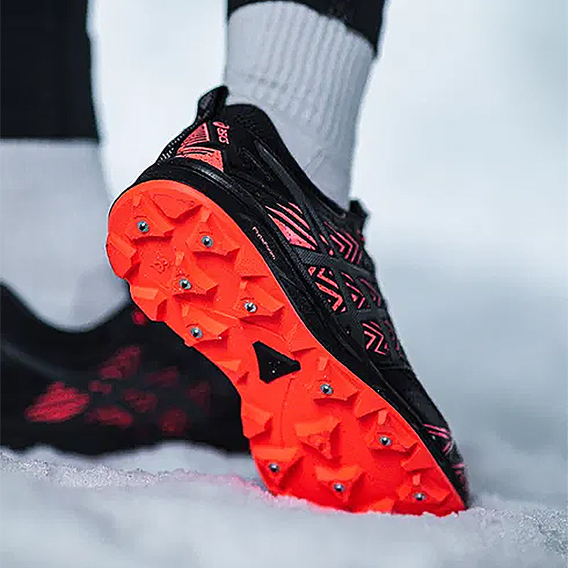 Ideal for icy and snowy conditions. Iron pins built into outsole offer grip and stability on slippery surfaces, strategically placed for optimum grip,