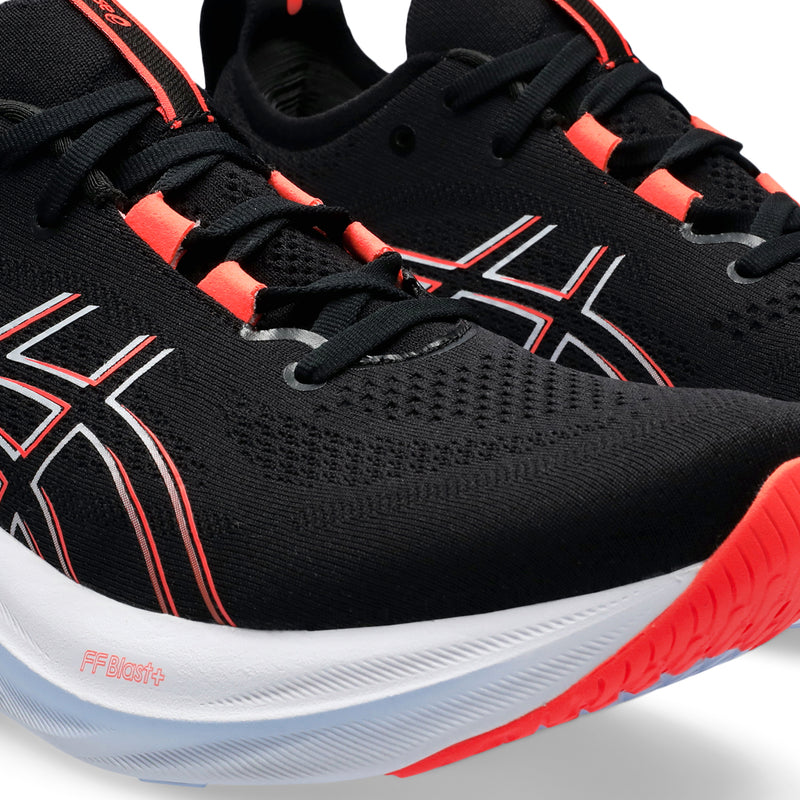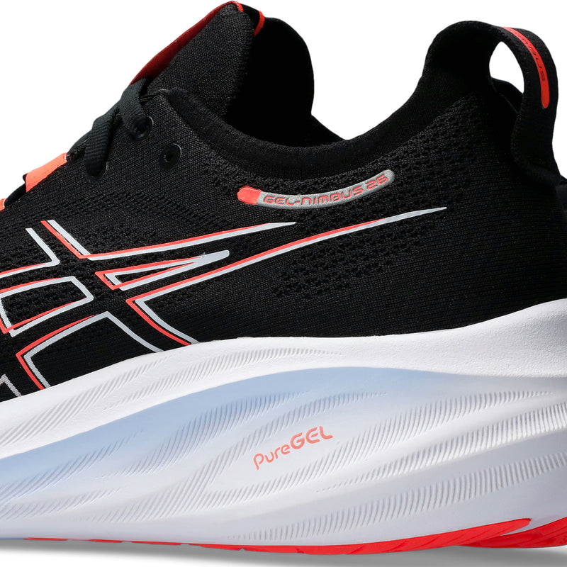 The GEL-NIMBUS® 26 shoe's soft cushioning properties help you feel like you're landing on clouds. This design is revamped to help create a softer and smoother running experience.A soft engineered knit upper comfortably wraps your foot while supplying advanced ventilation. Additionally, the knit tongue and collar help provide a soft and supportive feel.By using FF BLAST™ PLUS ECO cushioning, this trainer creates a lighter and softer cushioning experience with less of an impact on the environment.Lastly, ASICS®GRIP™ outsole rubber helps create better traction, improved softness, and advanced durability.