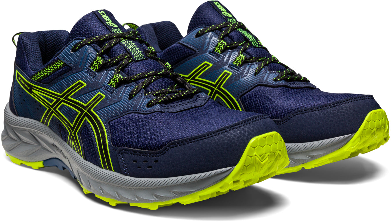 The GEL-VENTURE™ 9 shoe has been redesigned for increased cushioning. Its dual-purpose design effortlessly transitions from off-road terrain to urban streets. Constructed with AMPLIFOAM™ cushioning and a higher stack height, the midsole is outfitted with rearfoot GEL™ technology to ensure a softer, more comfortable footfall. The outsole boasts an advanced traction pattern capable of withstanding diverse settings.