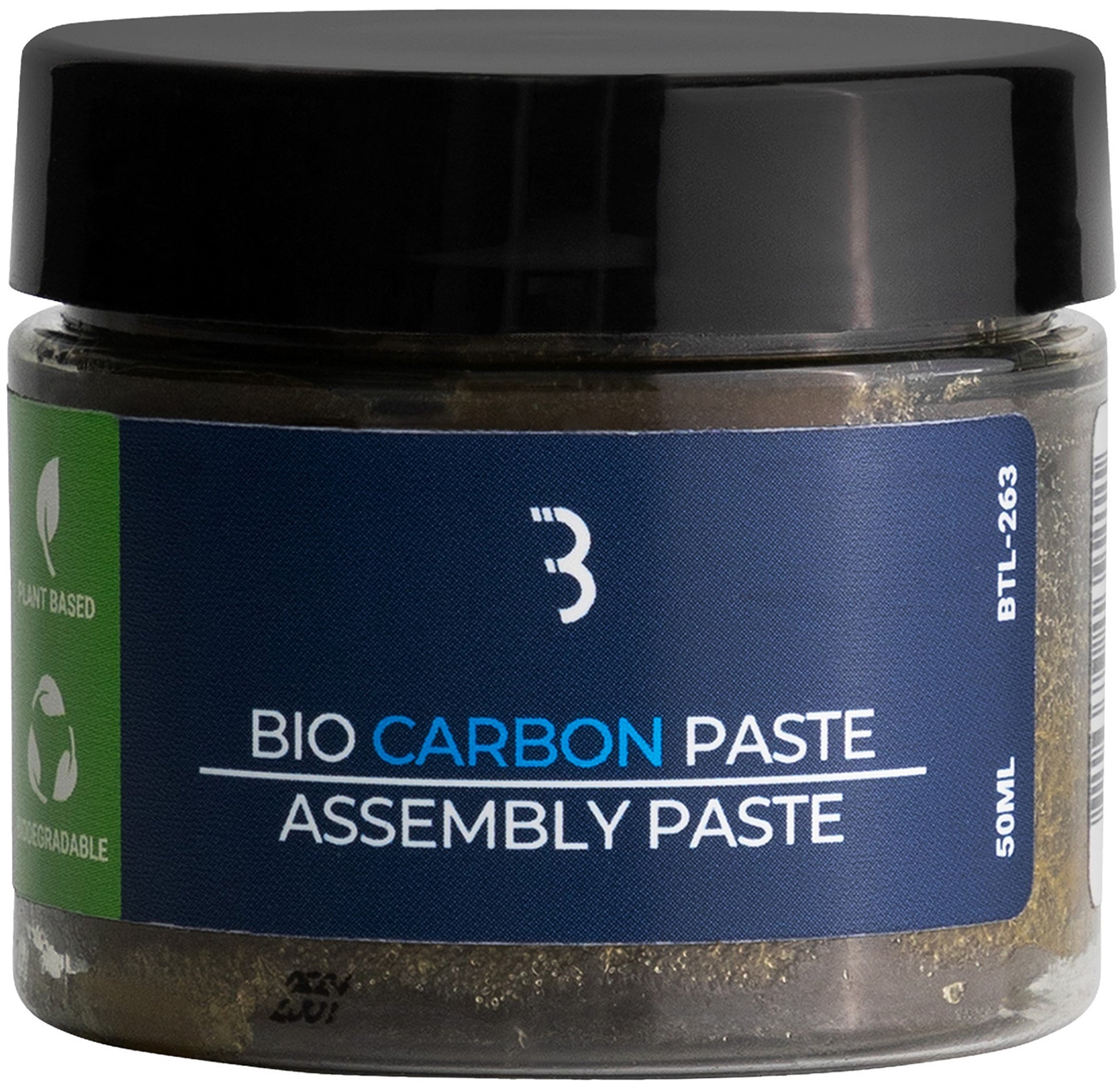 BioCarbonPaste assembly paste is crafted to assemble all your carbon bike parts. Its fine structure ensures essential grip, preventing damage and eliminating squeaking noises for exceptionally smooth rides. Ideal for mounting carbon seatposts, stems, and handlebars, this paste offers reliability and durability. What sets it apart is its composition, made with 100% plant-based ingredients, it's not only eco-friendly but also 100% biodegradable within 28 days. Elevate your cycling experience, explore our range of maintenance products, and discover the advantages of BioCarbonPaste.