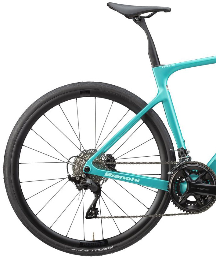 | Seatpost | Bianchi Infinito, Countervail technology, full carbon, aero-flex shape length: 320 mm, 0 offset (47-55 cm); 350 mm, -20 mm offset (57-61 cm) |