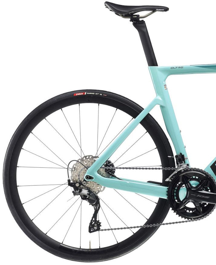 | Frame | Oltre Race aero carbon, compatible with mechanical/electronic transmissions, compatible with internal cable routing, BB-PressFit 86,5x41, integrated seat clamp, disc brake flat mount, thru axle 12x14 |