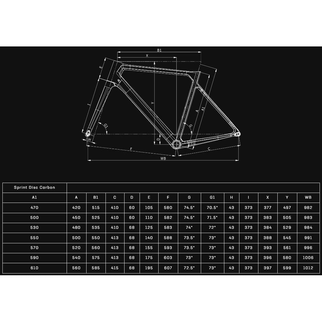 | Frame | Sprint carbon monocoque, mechanical/electronic, BB-PressFit 86,5x41, head tube 1.4"-1.5", integrated seat clamp, full carbon dropout, Disc brake flat mount, thru axle 12 x 142 sizes 47-50-53-55-57-59-61cm |