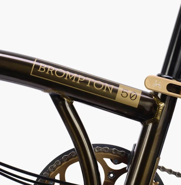 Each detail tells a chapter of our story. The Thermal Fade finish evokes the brazing process used by our team to produce bikes that last a lifetime. Each bike comes with one of 1,975 collectible ‘Brazer’s Coins’ as a tribute to our team’s talent and dedication. And, of course, there’s 50th anniversary gold wherever you look because this is a moment to celebrate!