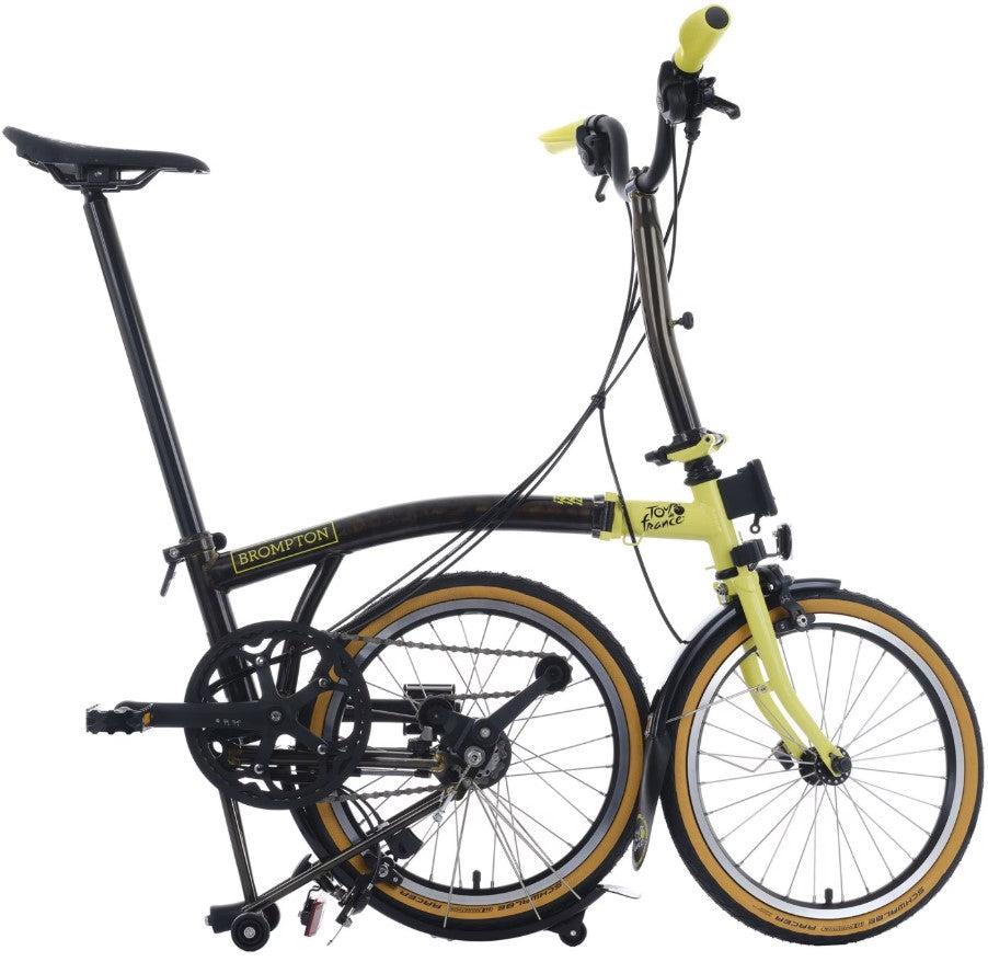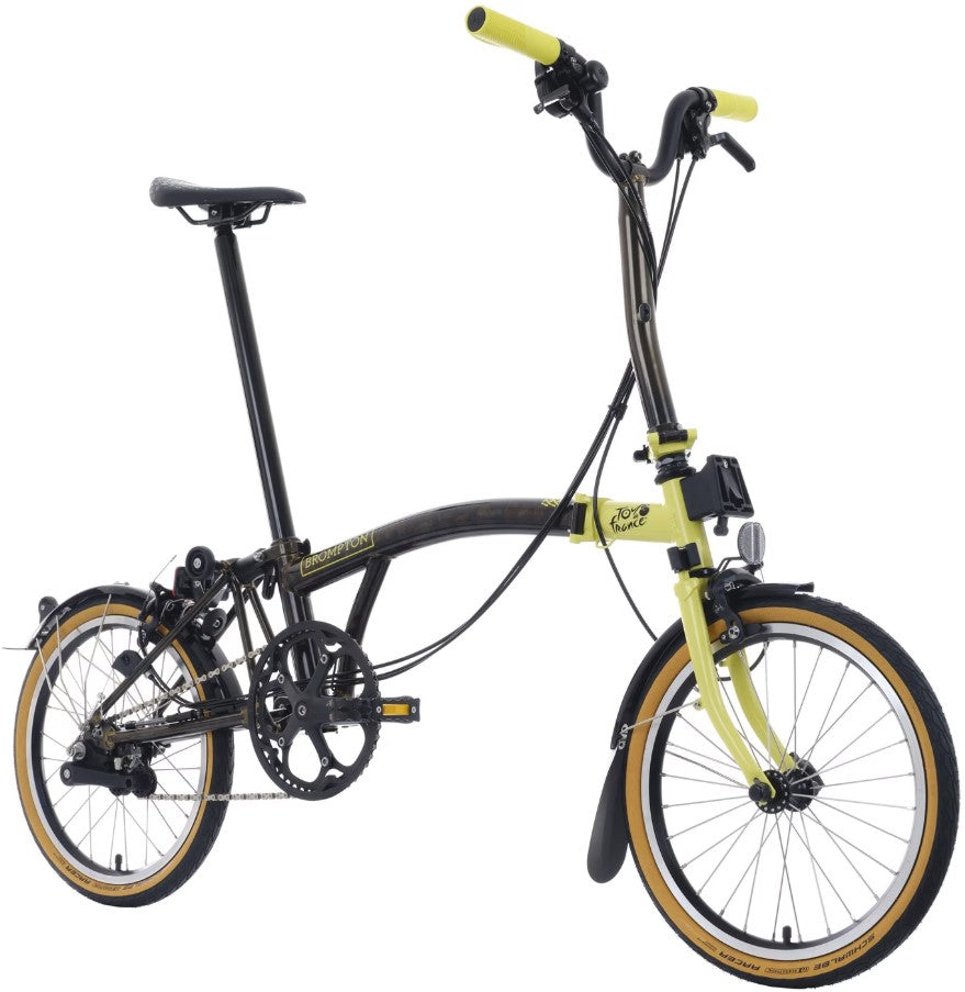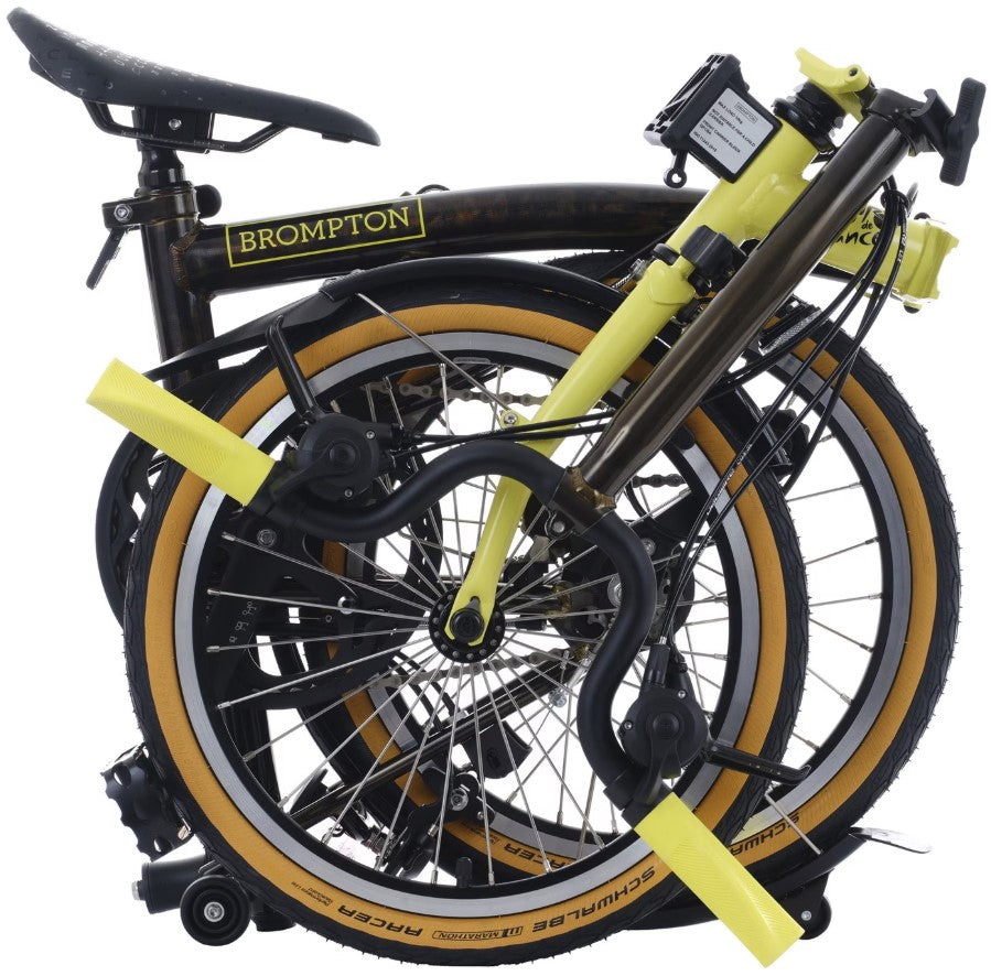 Hand built in our London Factory using high-quality steel tubes, the Brompton x Tour de France C Line bike is finished with an innovative print technique to create an abstract photographic pattern. Special details pay homage to the world’s greatest cycling race– the iconic jersey colour paint, Leaders Yellow bar grips, and the Brompton logo in the unmistakable yellow Brompton.