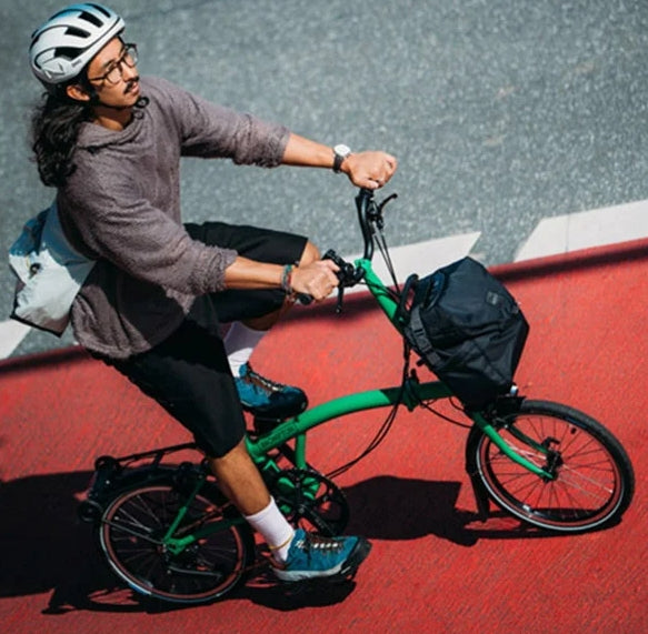 Moving folded has never been this easy. Thanks to our unique engineering, your Brompton stays locked together as you roll. Lift the seatpost for Shopper Mode. Drop the seatpost for Suitcase Mode. Push. Pull. Steer. Glide. That’s SuperRoll. Add the Roller Frame and you unlock SuperRoll+. It shifts the centre of gravity, so your bike feels lighter. Four wheels on the base mean even faster, smoother, more stable rolling.