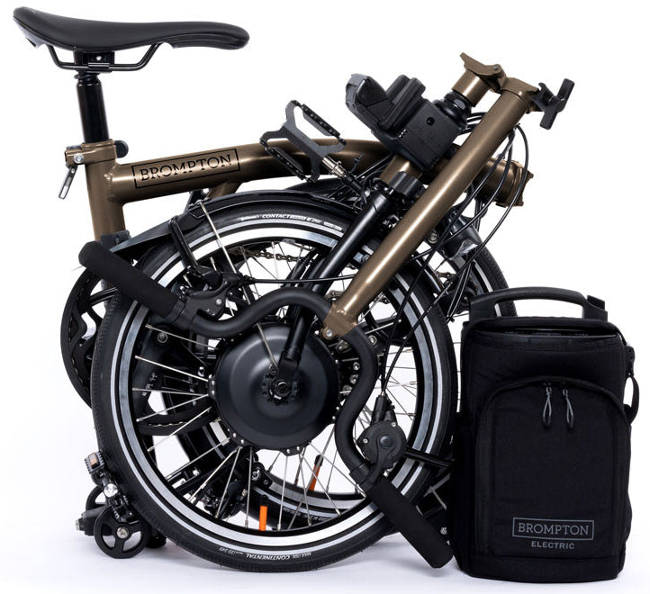 The compact Brompton Electric 300wh lithium-ion battery packs in the power. And when it comes to charging, it’s as easy as plugging in your phone. Remove the battery pack (2.89 kgs including bag) with one quick click. Plug into any regular socket. Fully charge in 4 hours. Boost for less if you’re short on time.