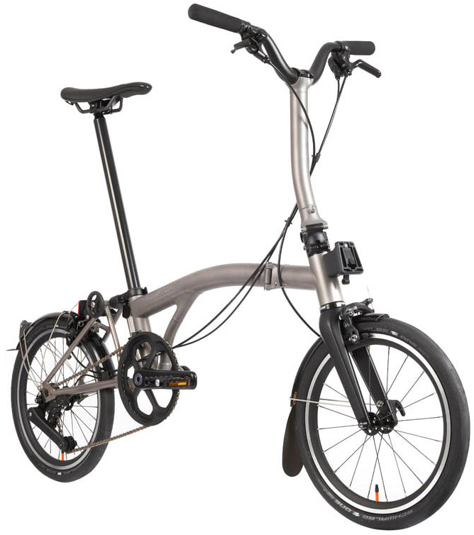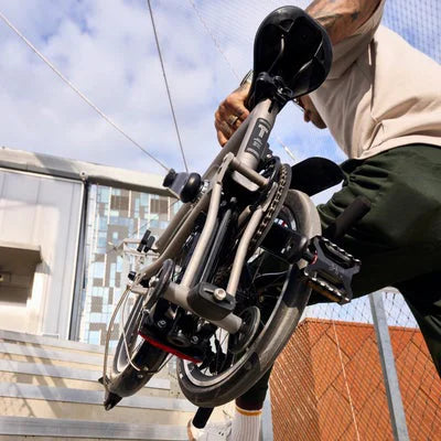 Introducing the Brompton T Line Urban - 4 Speed, the pinnacle of folding bike design and urban mobility. Crafted from superlight titanium, this lightweight folding bike redefines commuting with its precision-engineered features. The 4-speed drivetrain is optimized for city performance, ensuring smooth gear transitions whether you're accelerating, cruising, or climbing hills.