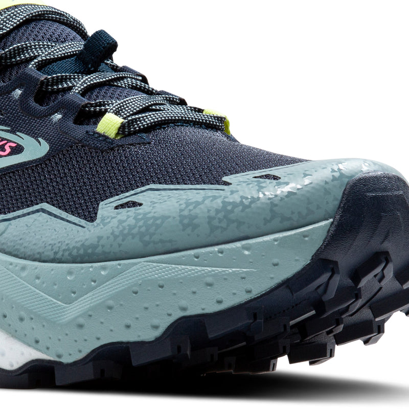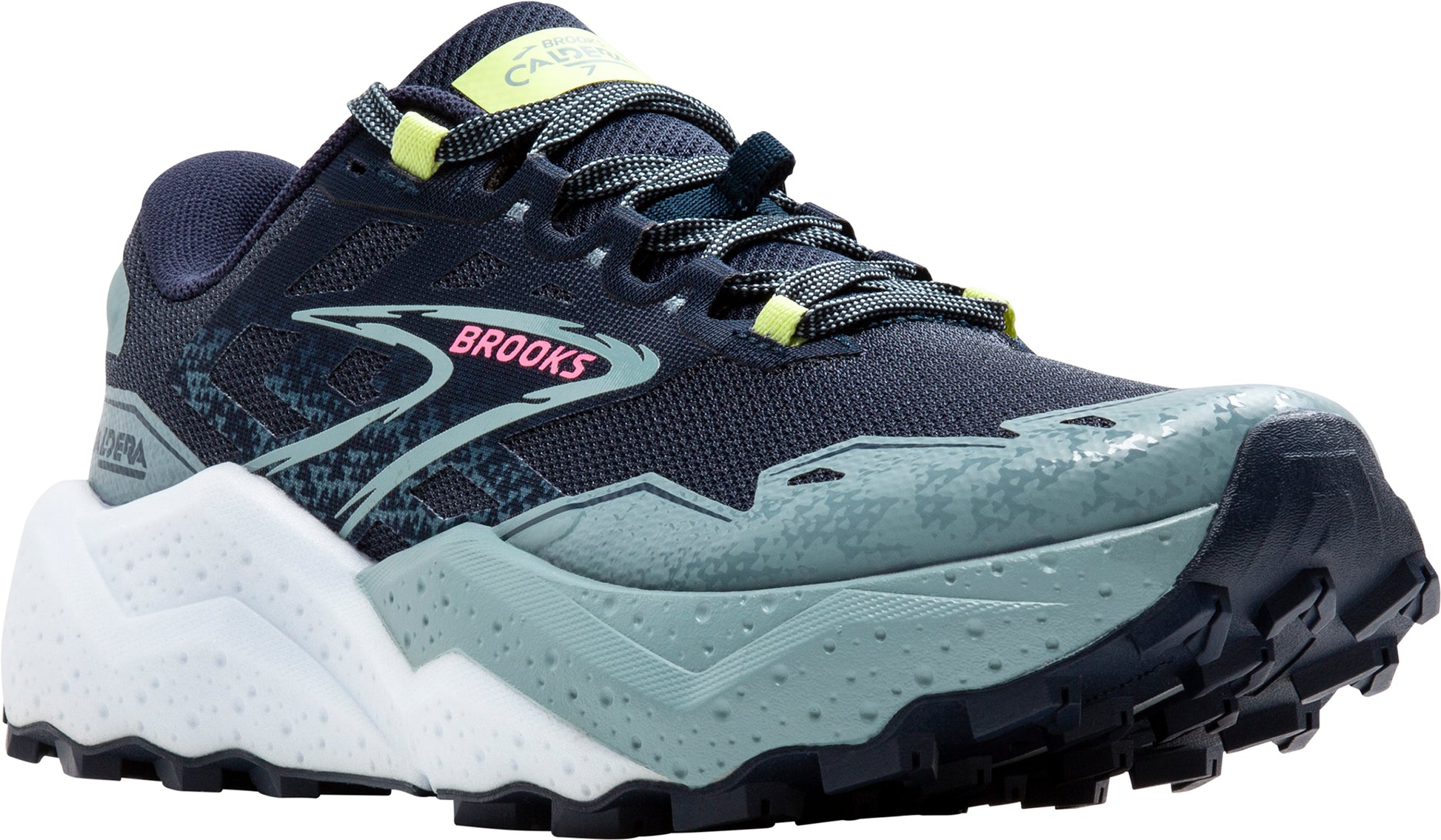Delivering long-haul comfort for long trail runs and races, the women's Caldera 7 combines premium cushioning with a durable, dynamic feel and stability over uneven terrain.