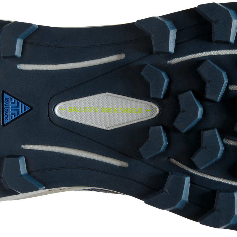 A Ballistic Rock Shield protection plate prevents small stones and rocks from creating discomfort underfoot whilst the gusseted tongue stops any pebbles or grit from entering the shoe. Further protection can be added in the form of a gaiter (sold separately), that attaches securely to the heel tab to hold it in place and there is also a small tab on the front to tuck the laces into so that they don’t get pulled undone by trailside vegetation.