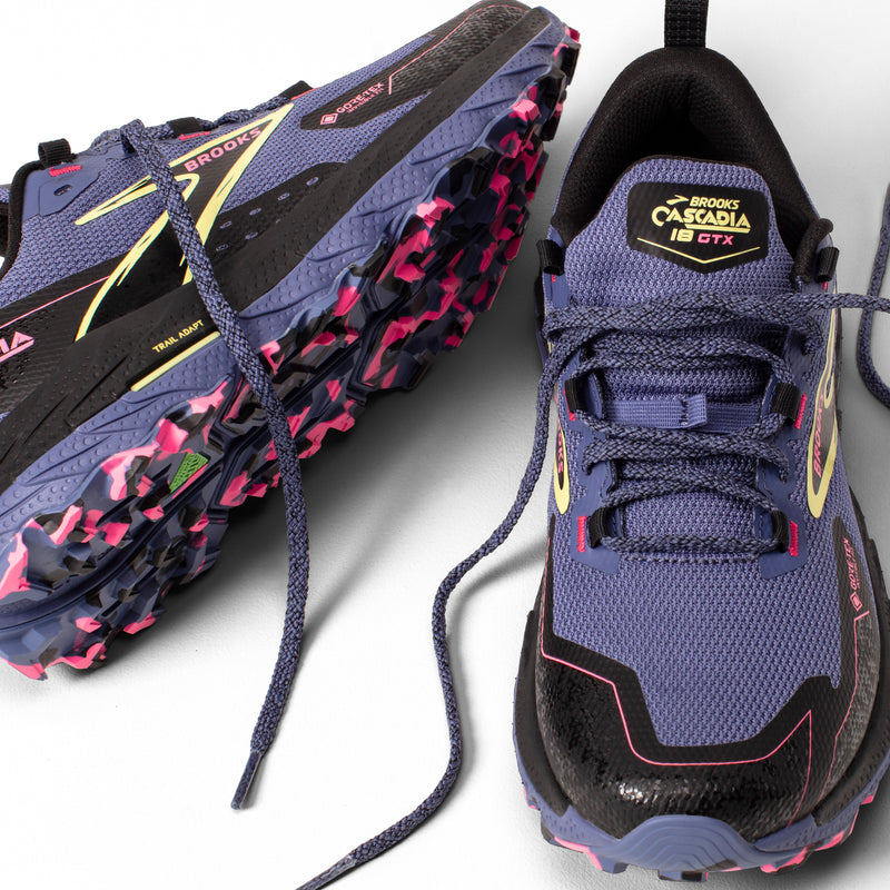 Rainy day trail runs? Lace up the Cascadia 18 GTX waterproof women's trail-running shoes. Breathable GORE-TEX® Invisible Fit technology repels water, while soft cushioning and an adaptable stability system enhance comfort as you cruise the trails. Sticky traction helps ensure secure strides so you can enjoy the view instead of looking at your feet.