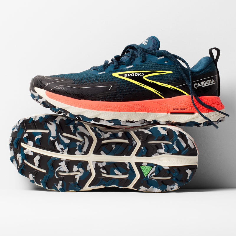 Head off on your next adventure. The men's Cascadia 18 trail-running shoes feature an updated mesh upper with protective overlays in high-wear areas. Soft cushioning and an adaptable stability system enhance comfort as you cruise the trails. Sticky traction helps ensure secure strides so you can enjoy the view instead of looking at your feet.