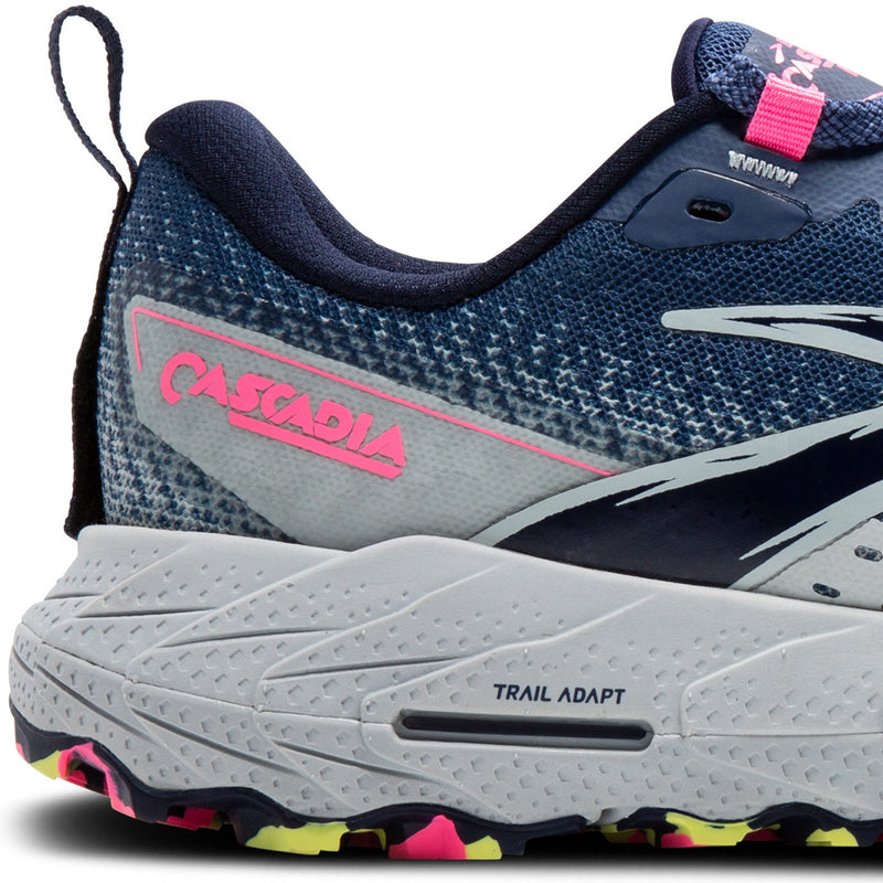 Adventure on the agenda? Lace up the women's Cascadia 18 mountain trail-running shoes, featuring an updated mesh upper with protective overlays in high-wear areas. Soft cushioning and an adaptable stability system enhance comfort as you cruise the trails. Sticky traction helps ensure secure strides so you can enjoy the view instead of looking at your feet.