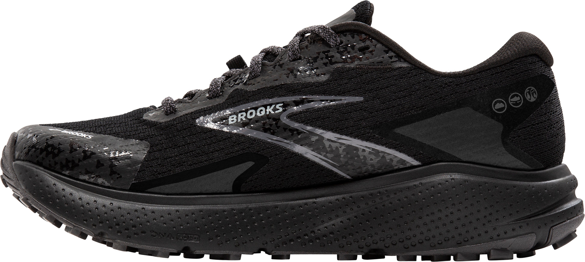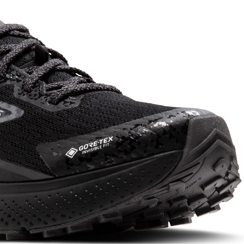 Designed for comfort during rainy runs on roads or trails, the Divide 5 GTX women's light trail-running shoes are ready for anything. Waterproof, breathable protection works with soft cushioning, sticky traction, and a familiar road-shoe fit to help you transition easily from road to trail and back again.