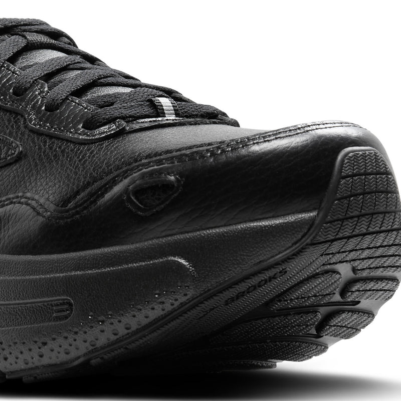 Durable, easy-to-clean leather gives the shoe a unique look.