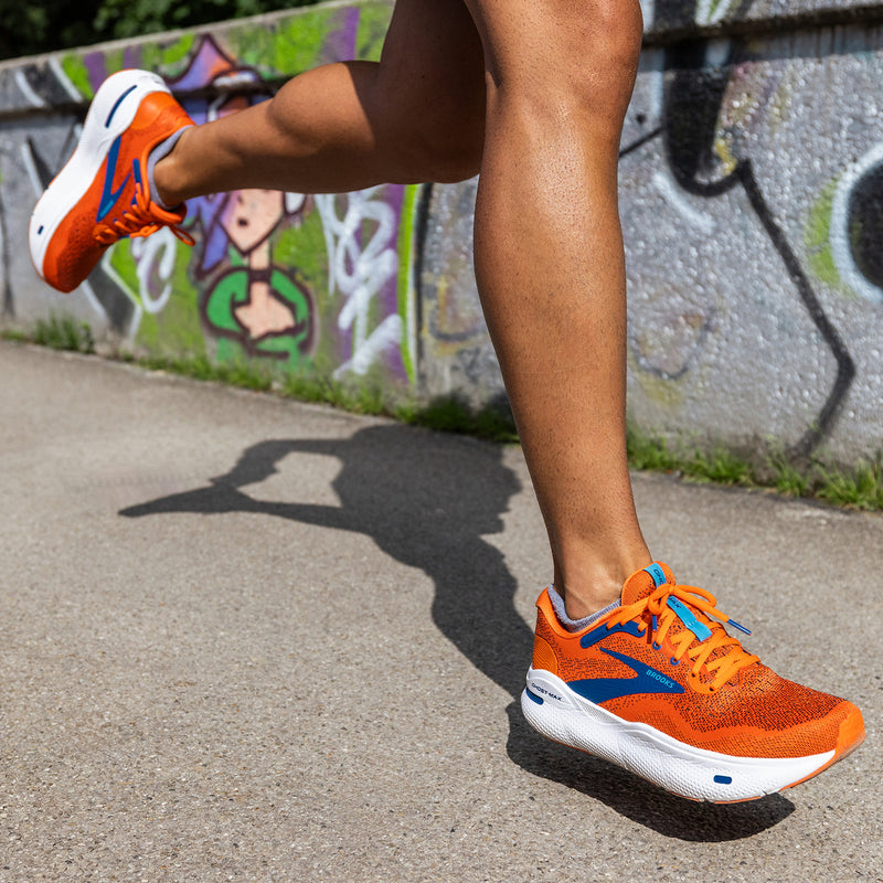 The new Brooks Ghost Max delivers enhanced protection thanks to plenty of soft cushioning, a super stable ride, and rocker-like transitions that propel you forward. This neutral shoe is great for running or walking, as it helps absorb impact to protect your feet.