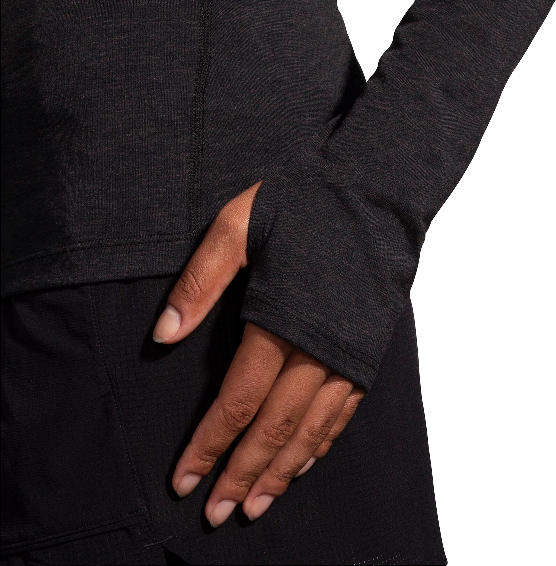 Merino wool blend fabric thermoregulates on the run, keeping you cool in the heat and warm in the cold.