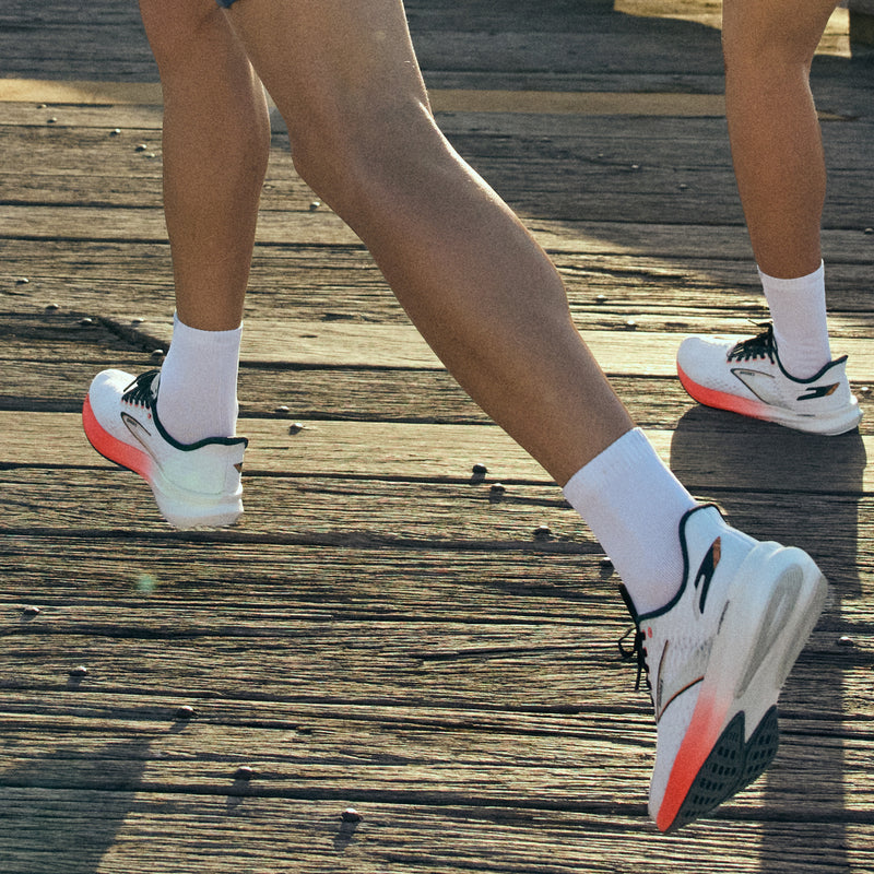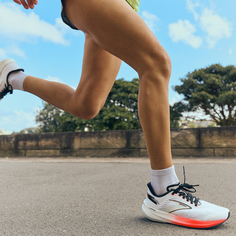 Check your watch for speedier splits in the women's Hyperion running shoe. Our lightest training shoe, — also frequently worn as a women's racing shoe — the Hyperion is perfect for speedy training days thanks to ultralight cushioning and an updated design that accelerates your heel-to-toe transition to propel you forward. A new, more secure upper completes the package.