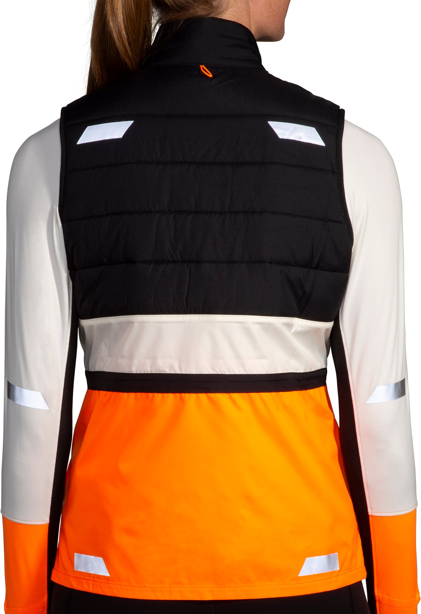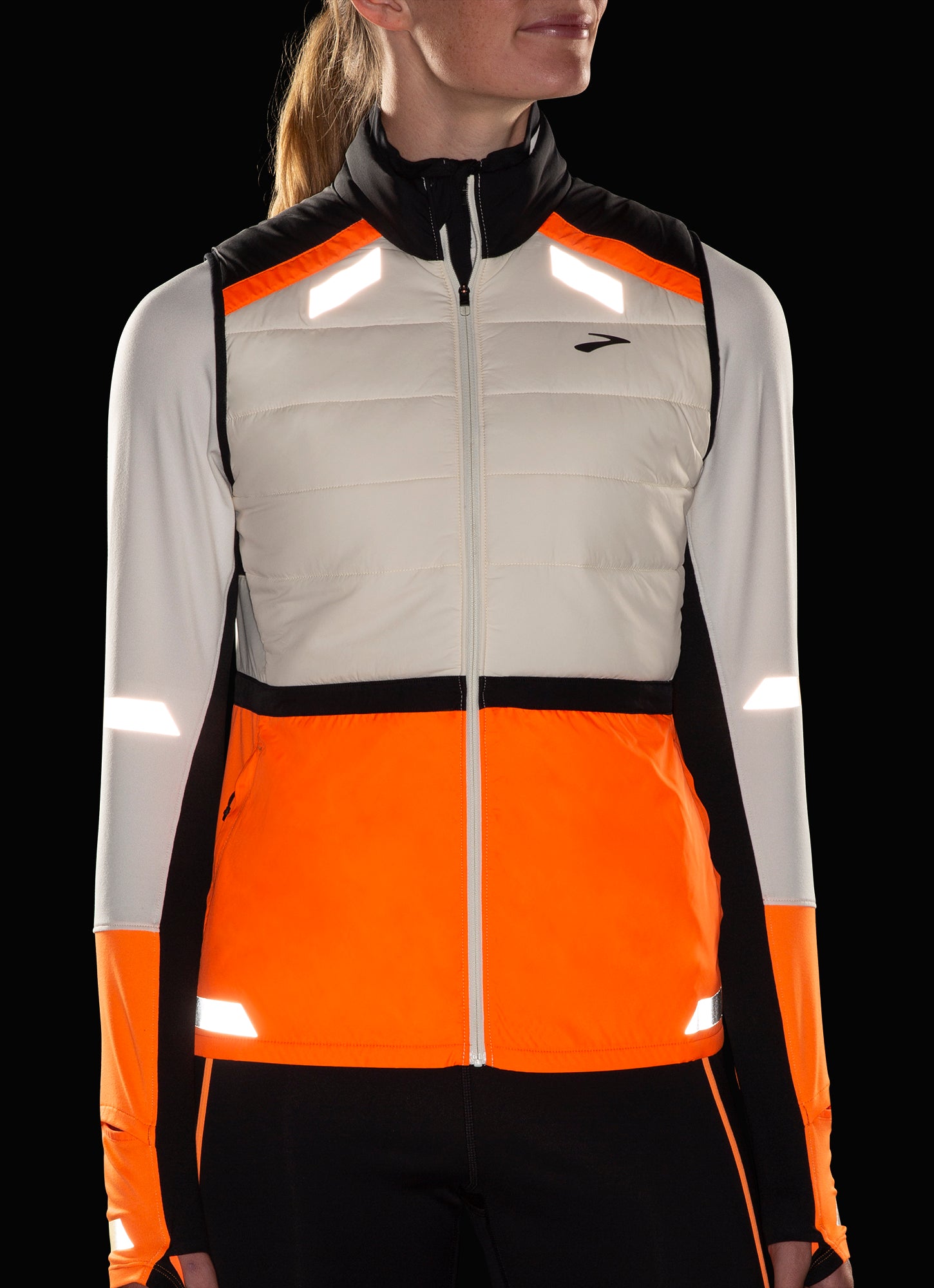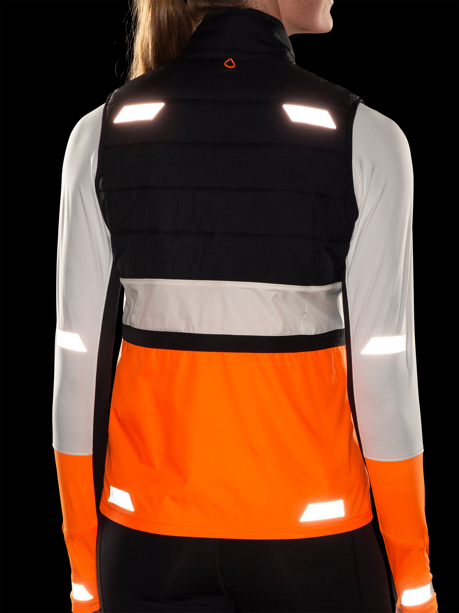 Low temps and low lights? Run in this insulated women's vest. GO₂ Warmᵀᴹ fabric and 120g THERMOLITE® insulation traps heat to keep you comfortable, while high-visibility design helps you stay seen in low-light conditions.
