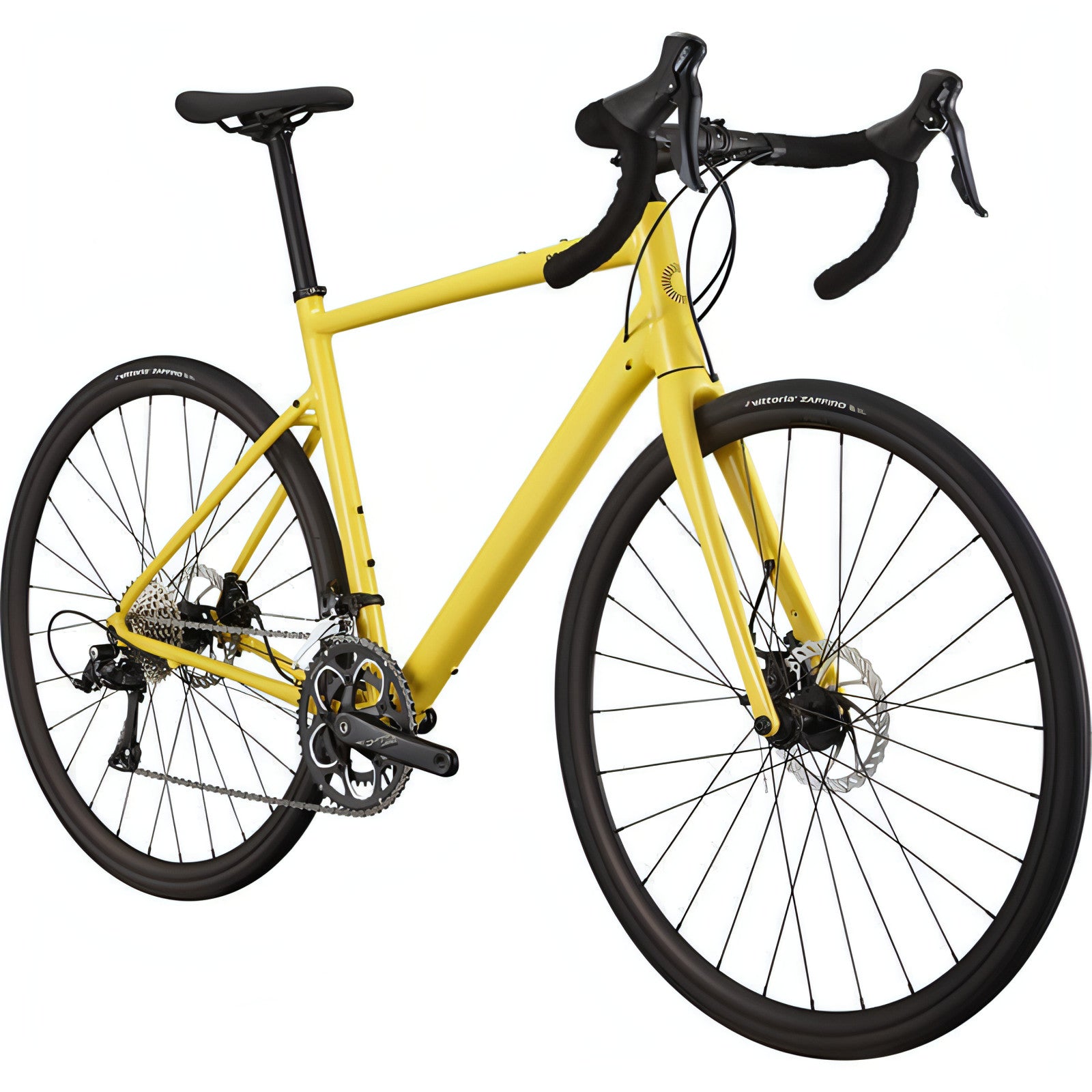 - Shimano Sora 9-speed drivetrain w/ dual chainring FSA crank