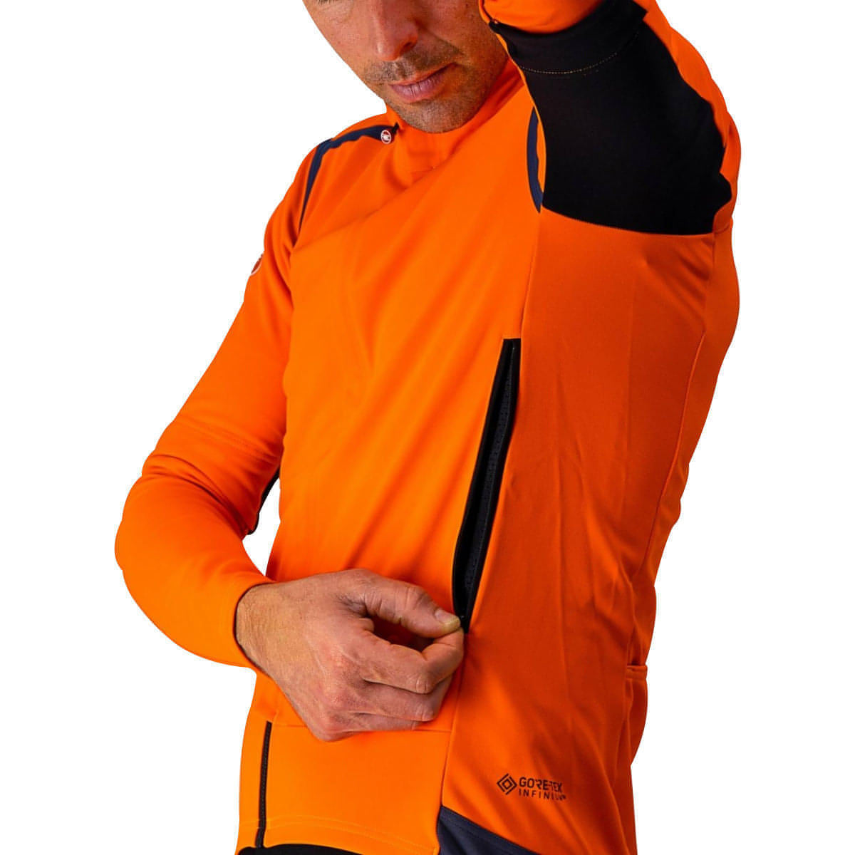 - Castelli exclusive GORE-TEX INFINIUM™ WINDSTOPPER® 205 Warm brushed water-resistant fabric on front-facing surfaces