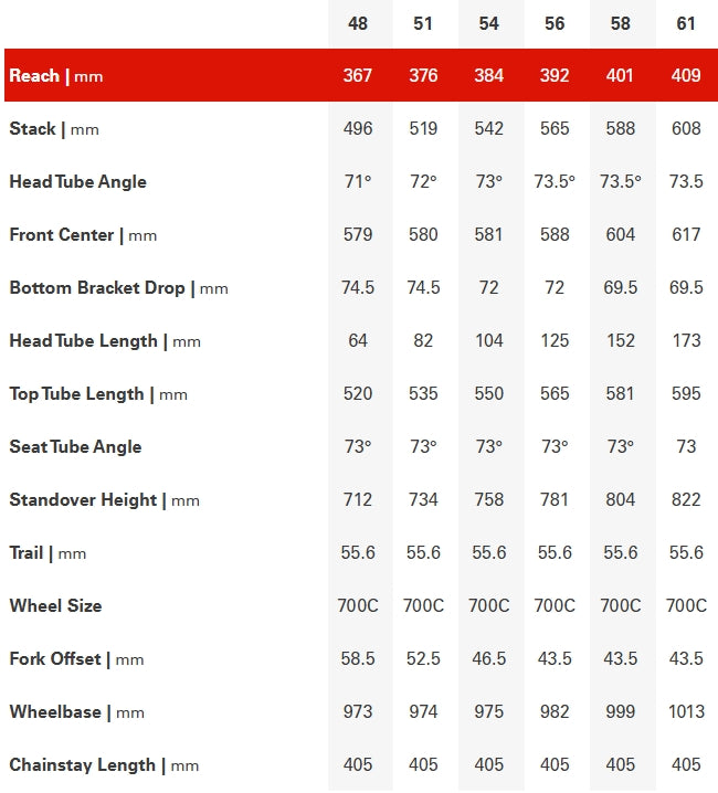 | Handlebar | Cervélo HB19 Carbon, Size 48 - 36cm Size 51 - 38cm Size 54 - 40cm Size 56 - 40cm Size 58 - 40cm Size 61 - 40cm |