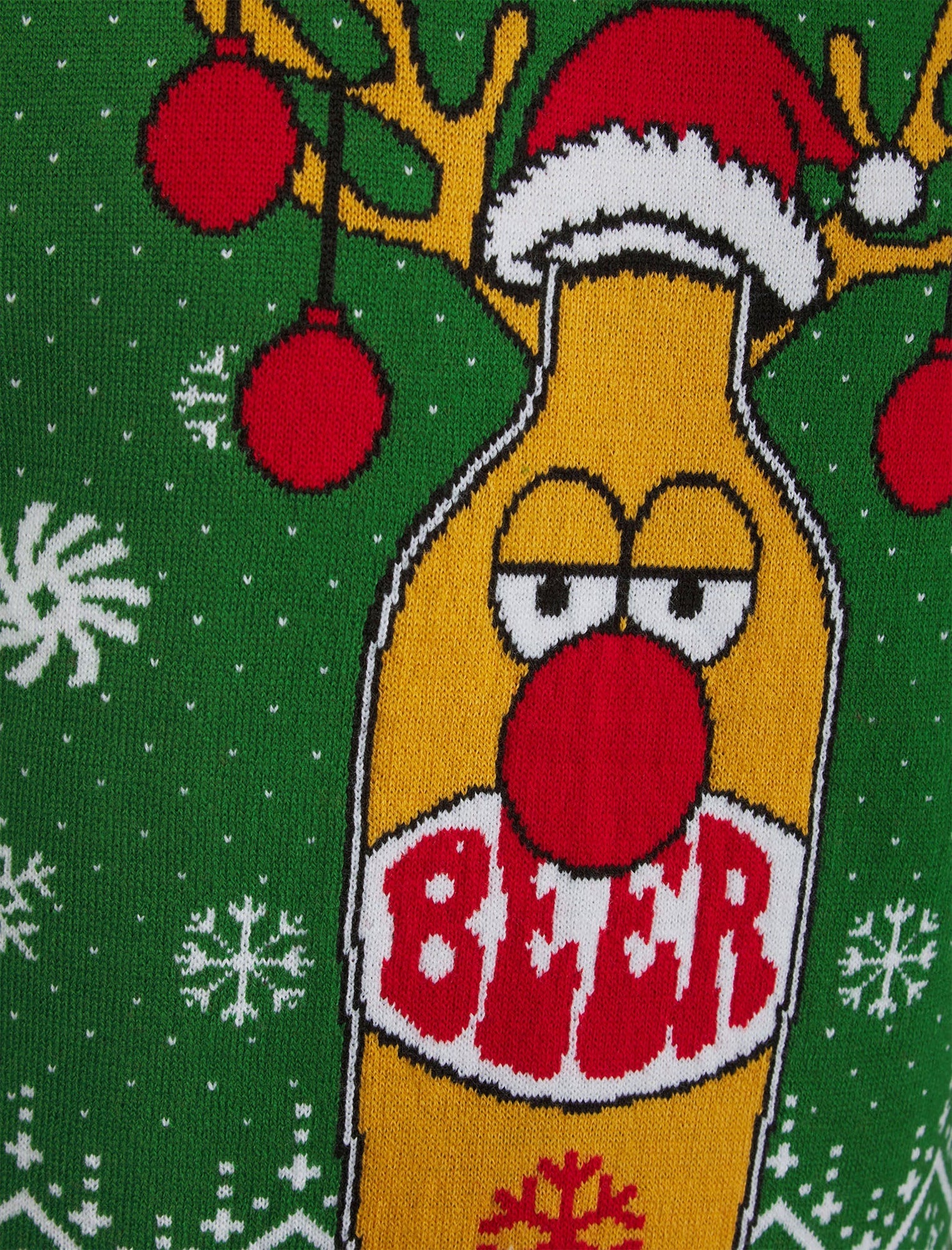 Celebrate the holiday season with the playful 'Beer' novelty Christmas jumper in Christmas Green by our 'Merry Christmas' brand. This vibrant jumper combines festive fun with cozy style, making it the perfect choice for spreading holiday cheer.