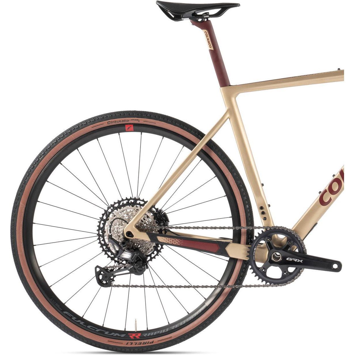 Equipped with Shimano's latest Gravel specific group set (Shimano 820 2x12) and Pirelli Cinturato™ gravel specific tyres 700x40c to match the frame's enormous tyre clearances.