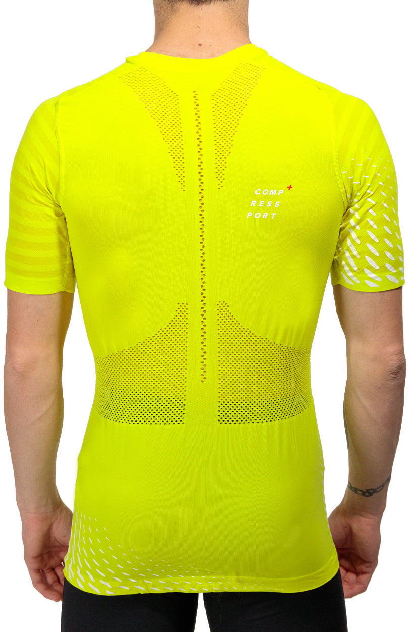 An ultra-lightweight t-shirt, weighing just 45 grams, so you'll quickly forget you're wearing anything. Thanks to breathable mesh and quick-drying microfiber, sweat evaporates and the t-shirt stays dry. Perfectly ventilated zones are located in the areas that need it most. The ultra-comfortable, loose fit allows airflow and your body to move freely. This t-shirt completely eliminates irritation thanks to the ultra-soft microfiber and seamless design.