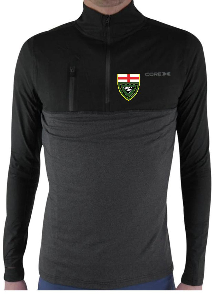 The CoreX Fitness English Schools Half Zip Long Sleeve Mens Running Top allows you to move freely and with comfort the flat lock seams prevents chafing, and the thumbhole sleeves give you added warmth on the colder days.