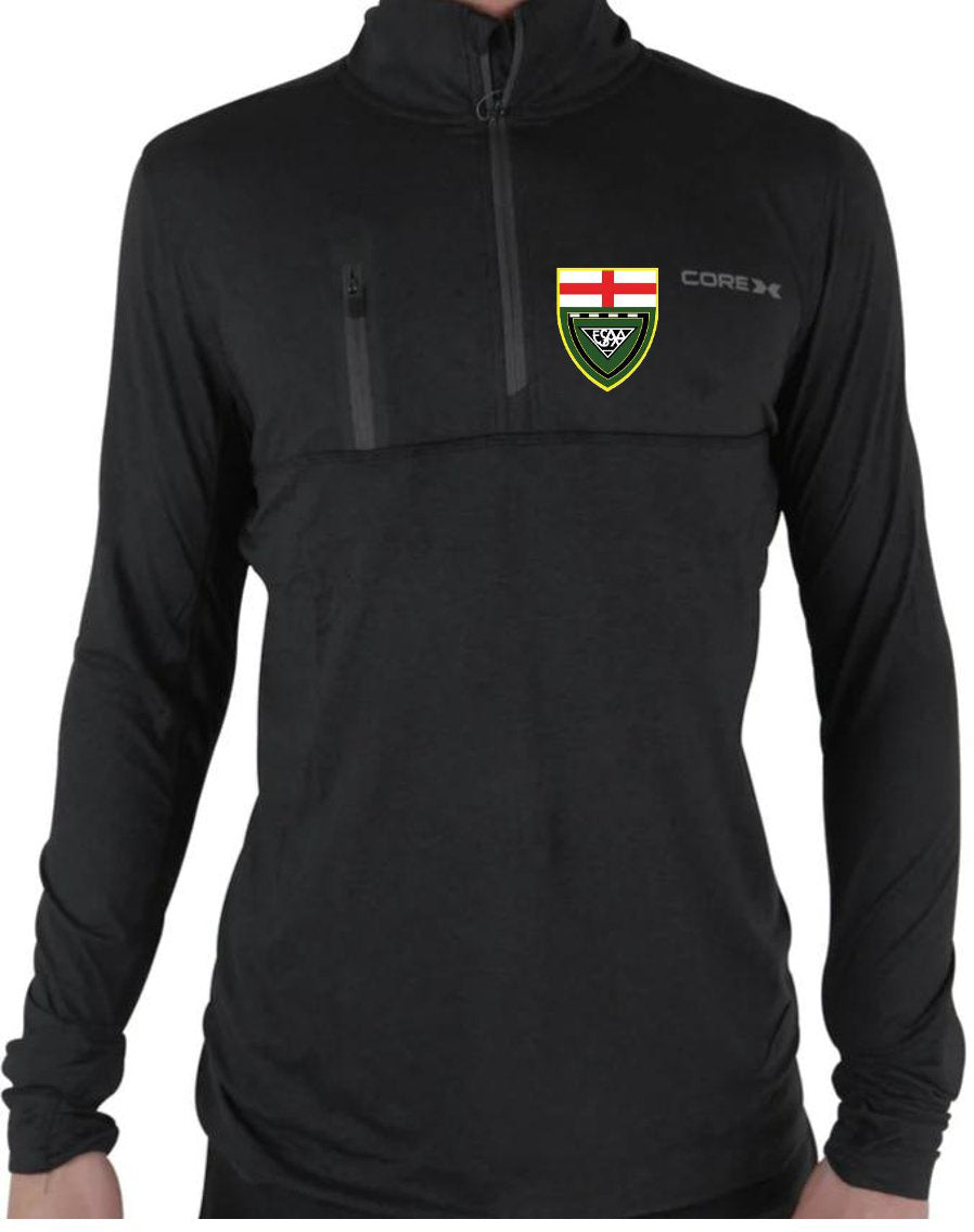 The CoreX Fitness English Schools Half Zip Long Sleeve Mens Running Top allows you to move freely and with comfort the flat lock seams prevents chafing, and the thumbhole sleeves give you added warmth on the colder days.