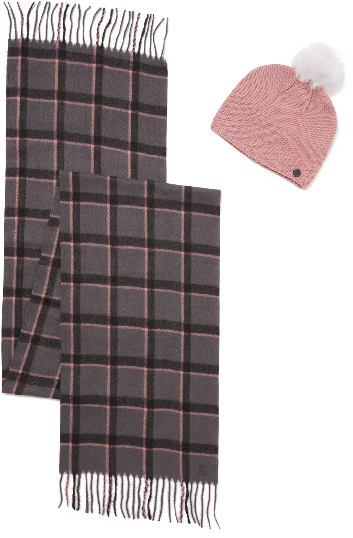 The Craghoppers Penelope Hat and Scarf set comes with a soft brushed polyester scarf and traditional knitted hat fleece lined with faux-fur bobble.