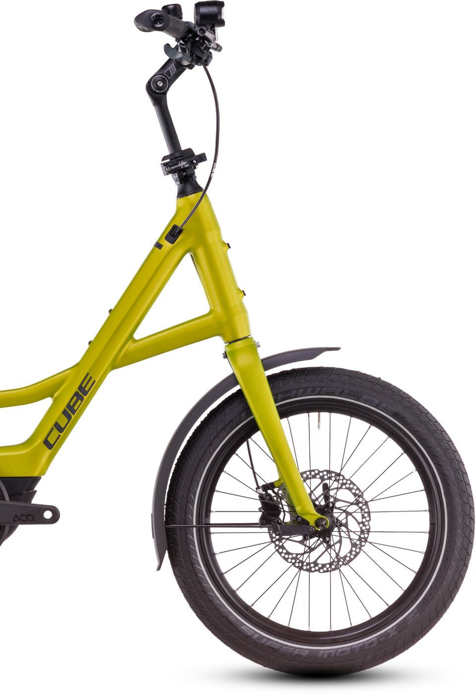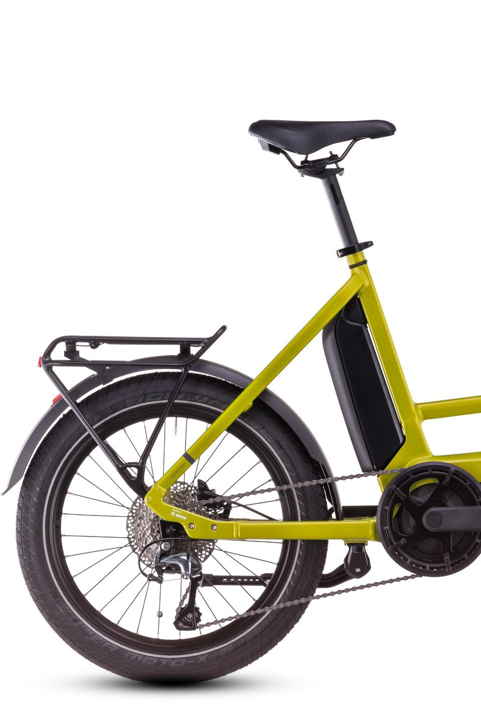 At CUBE we know that the simplest solutions are often the best. The Compact Hybrid's cross-braced down tube is elegant, stiff and strong. It also makes this an easy bike to step in and out of, as well as providing a convenient carrying handle. There's a long head tube for accurate, safe steering. The smooth and powerful Bosch Performance drive unit lives in a custom housing at the bottom of the frame, with the battery tucked out of the way of both luggage and rider. Quick and easy saddle and handlebar adjustments allow one bike to fit the widest possible range of riders. And the front luggage carrier increases carrying capacity and adds even more versatility. For commuting, for popping to the shops, for camping, for exploring. For you.