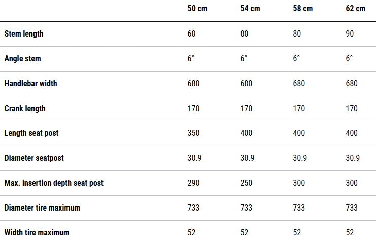 | Frame | Aluminium Superlite, Efficient Comfort Geometry, Fixed Integrated Battery, Advanced Internal Cable Routing, Slider Dropout |