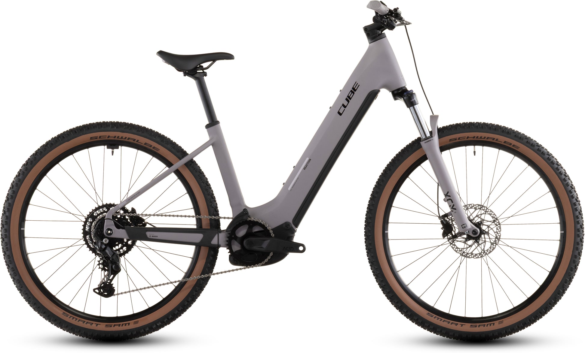 We call this frame Easy Entry because that's exactly what it does, but there's more to the Reaction Hybrid Performance than just an elegantly practical design. With the 600Wh PowerTube battery neatly concealed and the Bosch Performance drive housed securely, its svelte lines disguise lots of clever features. The integrated seat clamp and cable routing complement the clean aesthetic, and we built in our X-Connect system so that it's quick and easy to plug in an optional ACID front light. The chain guide is pre-installed, and it's also ready to accept ACID mudguards. And there are sizes to cater for most riders. We've thought of everything, so you can just ride.