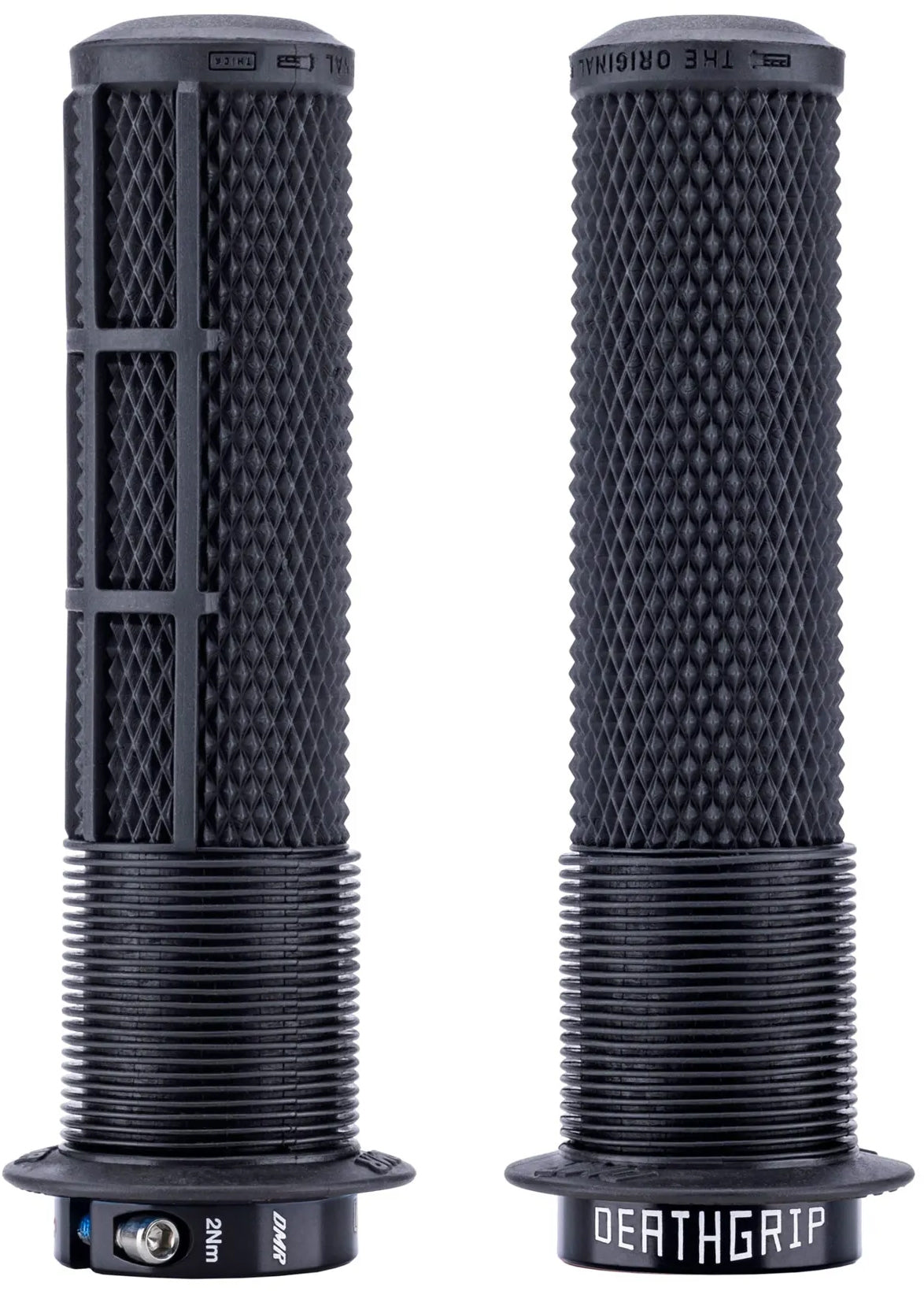 The DMR Deathgrip2 features the grip pattern and layout that inspired a whole generation of mountain bike grips – it starts with a soft mushroom section for comfort in the thumb and forefinger area, preventing blisters in a soft-tissue zone. Next, the grip pattern features diamond knurl for grip in all conditions and all terrains – and the waffle layout underside holds your fingers in the perfect position for grip and control. A tapered core means the Deathgrip is firmly mounted onto your handlebars with ease and the use of just one lockring keeps things simple and tight. The krayton rubber grip compounds we use are soft and comfortable, yet durable and lightweight. Select thin or thick diameters, and with or without flanges – the choice is yours.