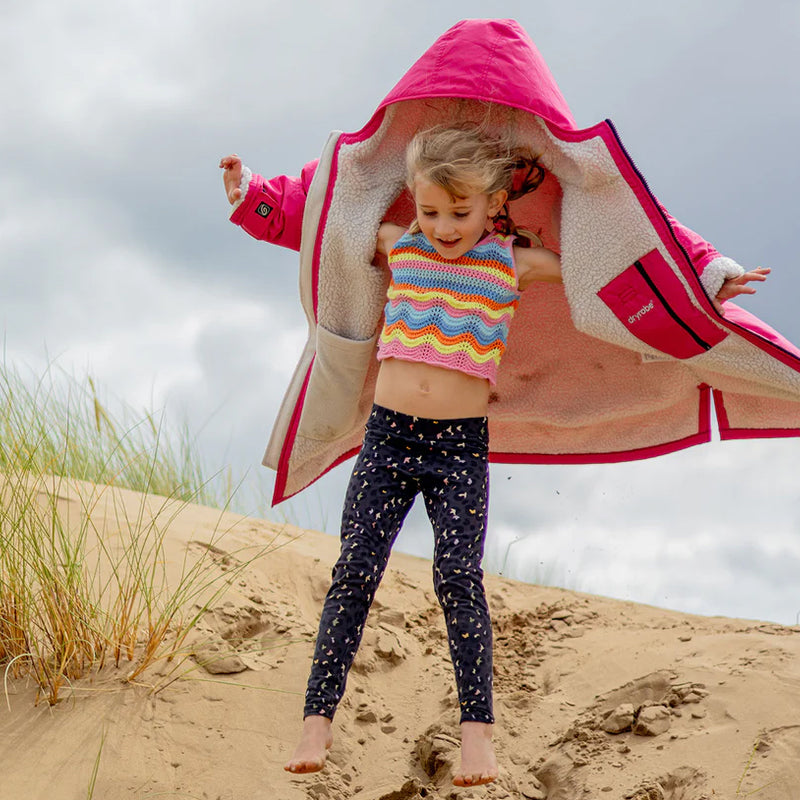 Its iconic design combines a durable waterproof outer with a super-warm inner that will protect your child from the elements, whilst giving them enough space to change in and out of a wetsuit, swimwear or sports kit. The unique quick-drying fleece lining allows the dryrobe® Advance to be used multiple times throughout the day, over wet kit, without the need for drying between uses.