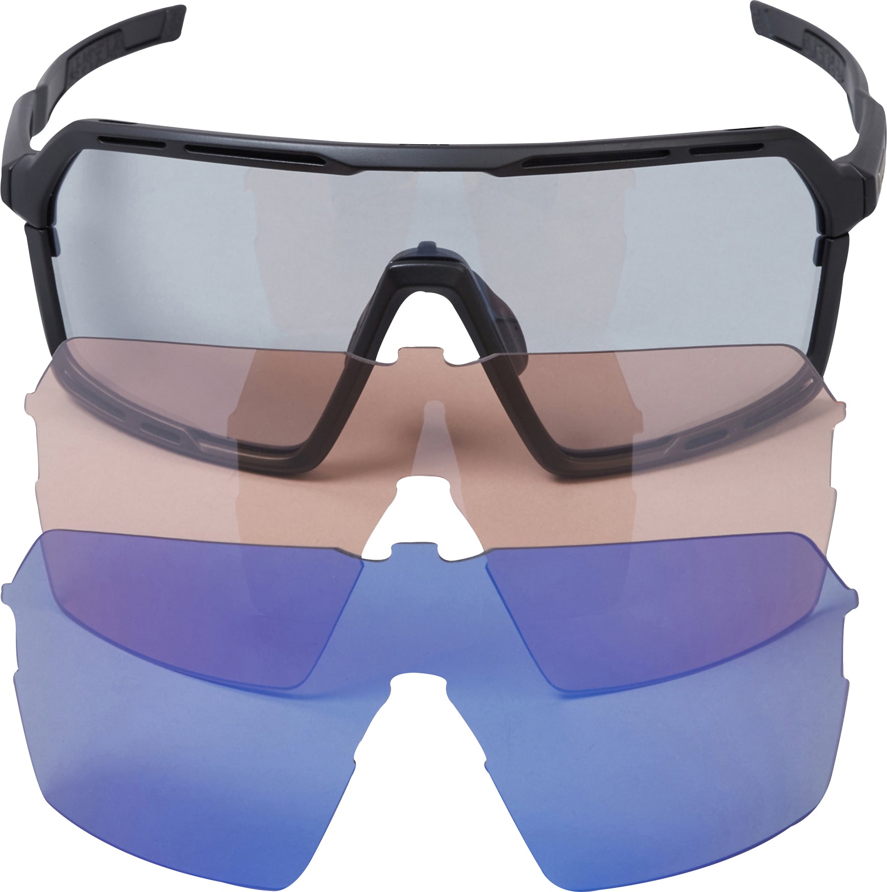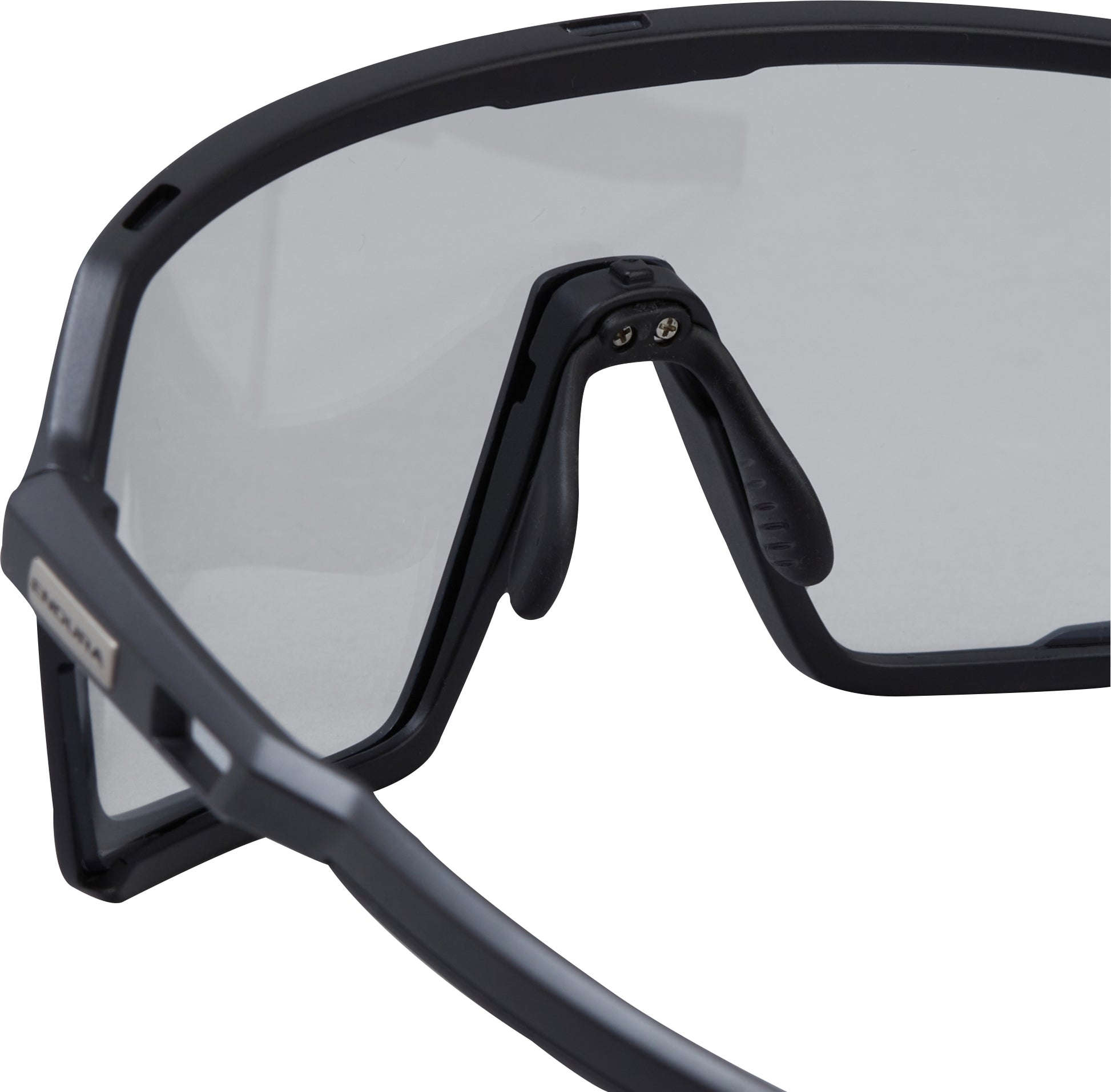Full frame. Half frame. Full frame – half frame. Switch in seconds with the adjustable nosepad. More? Sun’s out, swap out the lenses. High-def, light-reactive polycarbonate. Or amber for when it’s not. Comes with a moulded hard case, carry pouch, and lens protector sleeve. Lightweight TR90 upper frame and temples. Removable N66 lower frame bar. Go full frame to half with the adjustable nose pad. One-piece cylindrical profile. Main lens with flash mirror finish, additional REVO coloured lenses. All with fog-busting, water-repelling coating. UV protection? It’s certified against EN ISO 12312-1:2013.