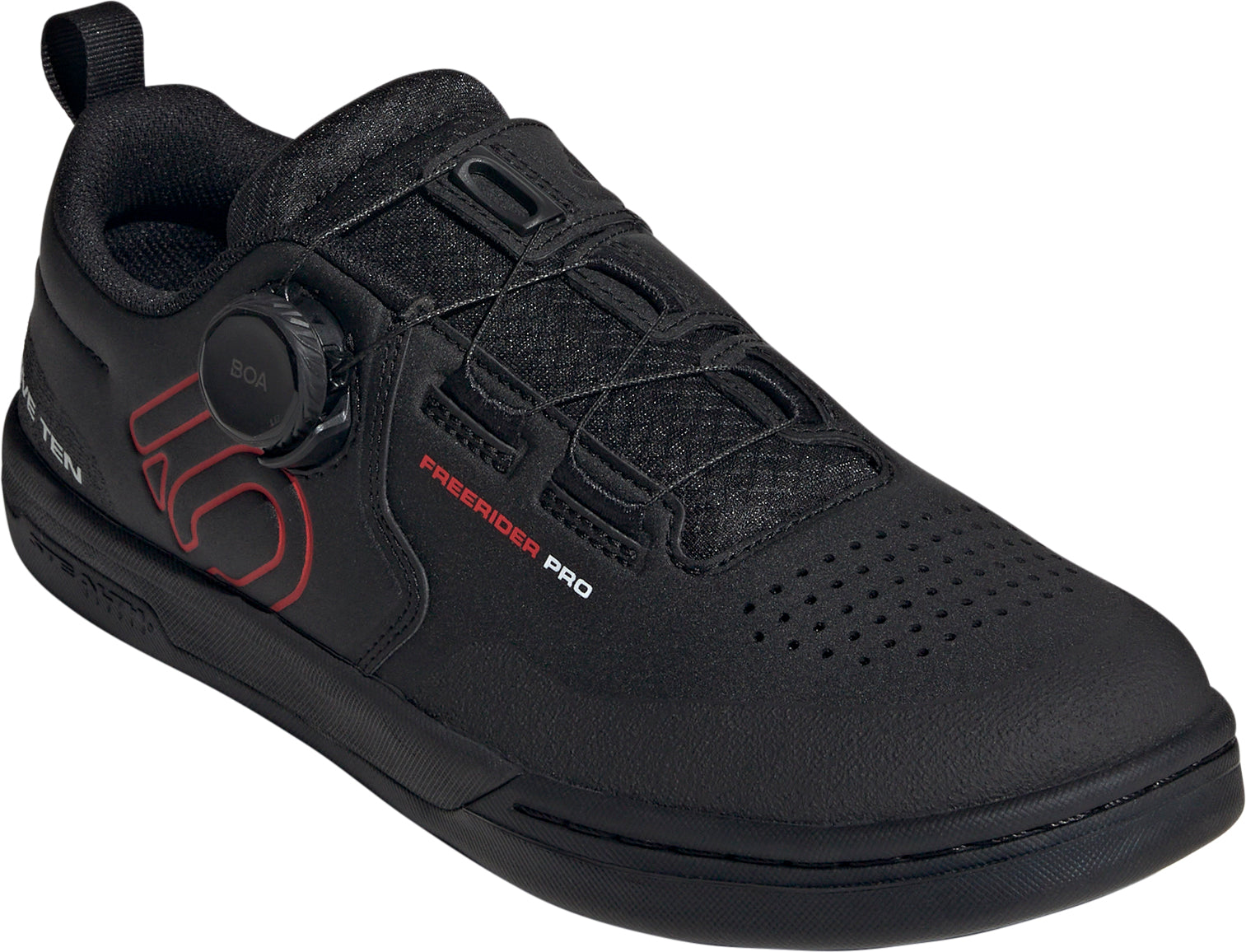 The adidas Five Ten Freerider Pro Mountain Bike shoes brings on-the-fly adjustment to the proven comfort and flat pedal performance of the iconic Freerider. The BOA® Fit System lets you micro-adjust the feel to match your feet. Snug them up for rowdy descents and loosen them up post-ride, all with the quick turn of a dial. They're packed with the performance and comfort that set the bar for flat pedal mountain bike shoes, including the grip of Stealth rubber, a quick-drying upper and a balanced flex. A reinforced toe adds impact resistance, and a cushioned midsole keeps you focused on the fun on and off the bike.