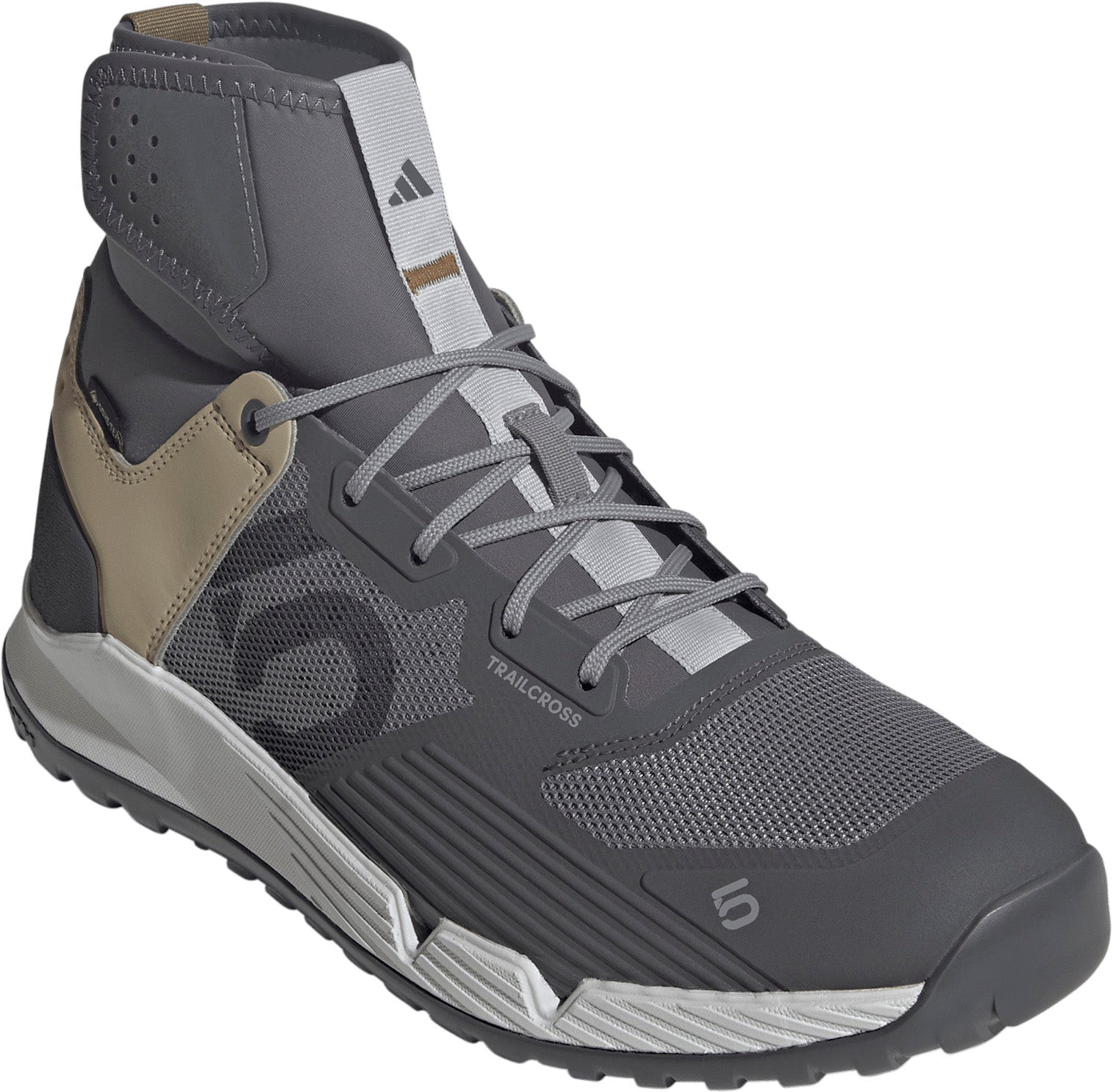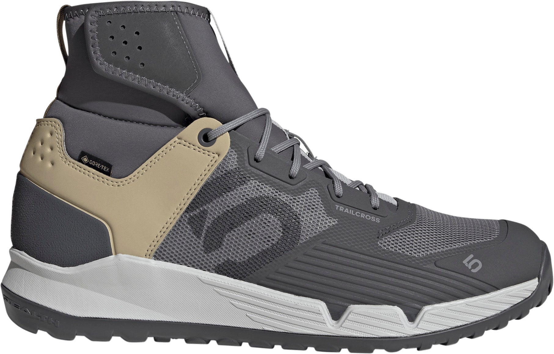 Built from the ground up with adventurous riding in mind, these adidas Five Ten Trailcross mountain bike shoes balance pedaling efficiency, weather protection and walkability. A waterproof, breathable GORE-TEX membrane seals out wet conditions to keep your feet dry. The Stealth Phantom rubber outsole and Dotty tread keep your feet planted on the pedals and offer confident grip for hike-a-bike sections. The high-top design seals out dust, debris and mud, while the reinforced upper stands up to long, adventurous days.