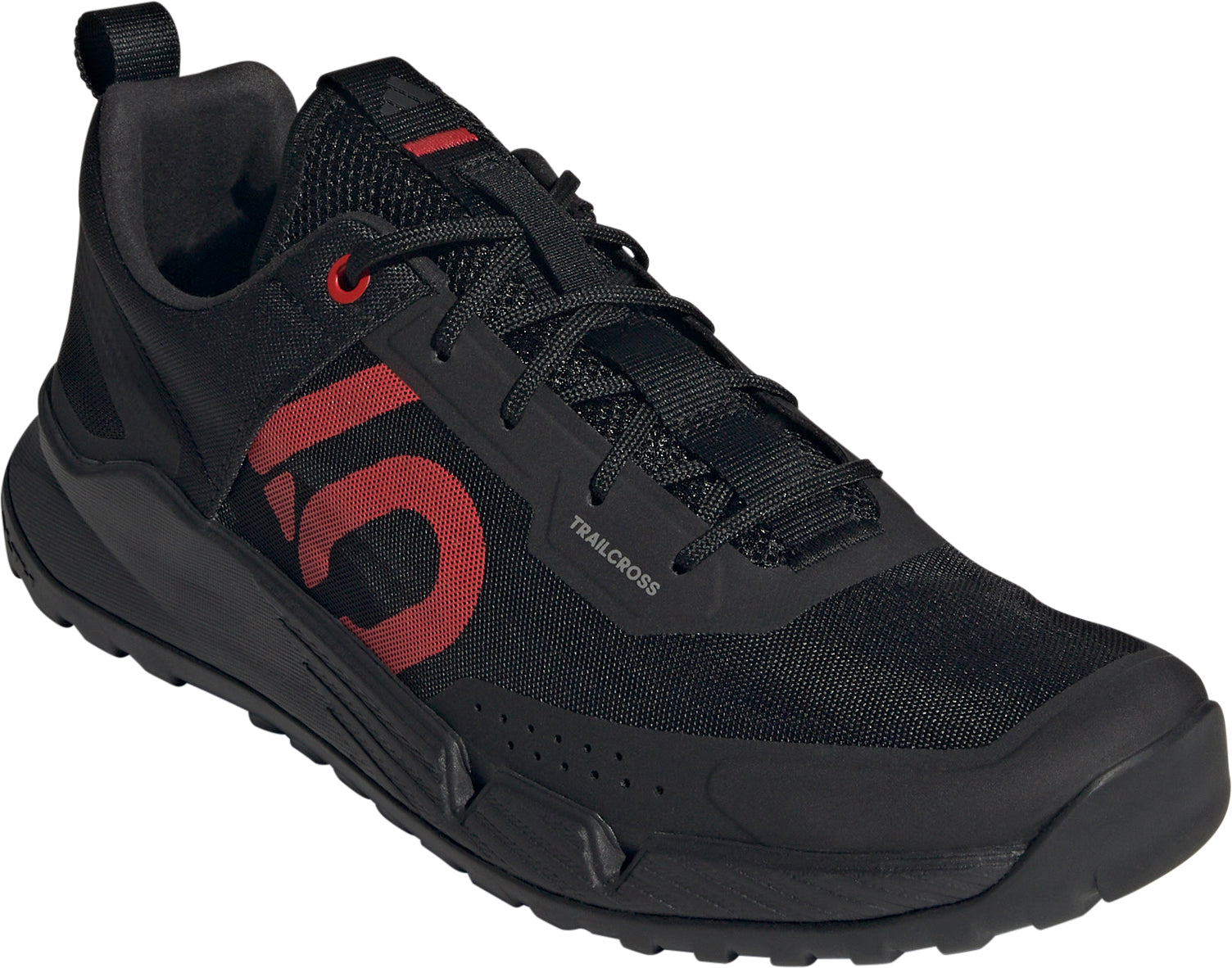 Designed with adventure riding and bikepacking in mind, the adidas Five Ten Trailcross LT mountain bike shoes are the lightweight, breathable bike shoes that you can wear for adventurous all day rides. Stiff enough for efficient pedaling, they include a flexible forefoot for comfortable walking. A Stealth Phantom rubber outsole and Dotty tread maintain confident pedal control, and the added tread detail at the toe and heel give all-terrain traction off the bike. A breathable mesh upper and water drainage system offer quick-drying comfort, and a reinforced toe box adds peace of mind in rough terrain. No matter where your ride takes you, the cushioned midsole delivers comfort on and off the bike. Lace up and explore.