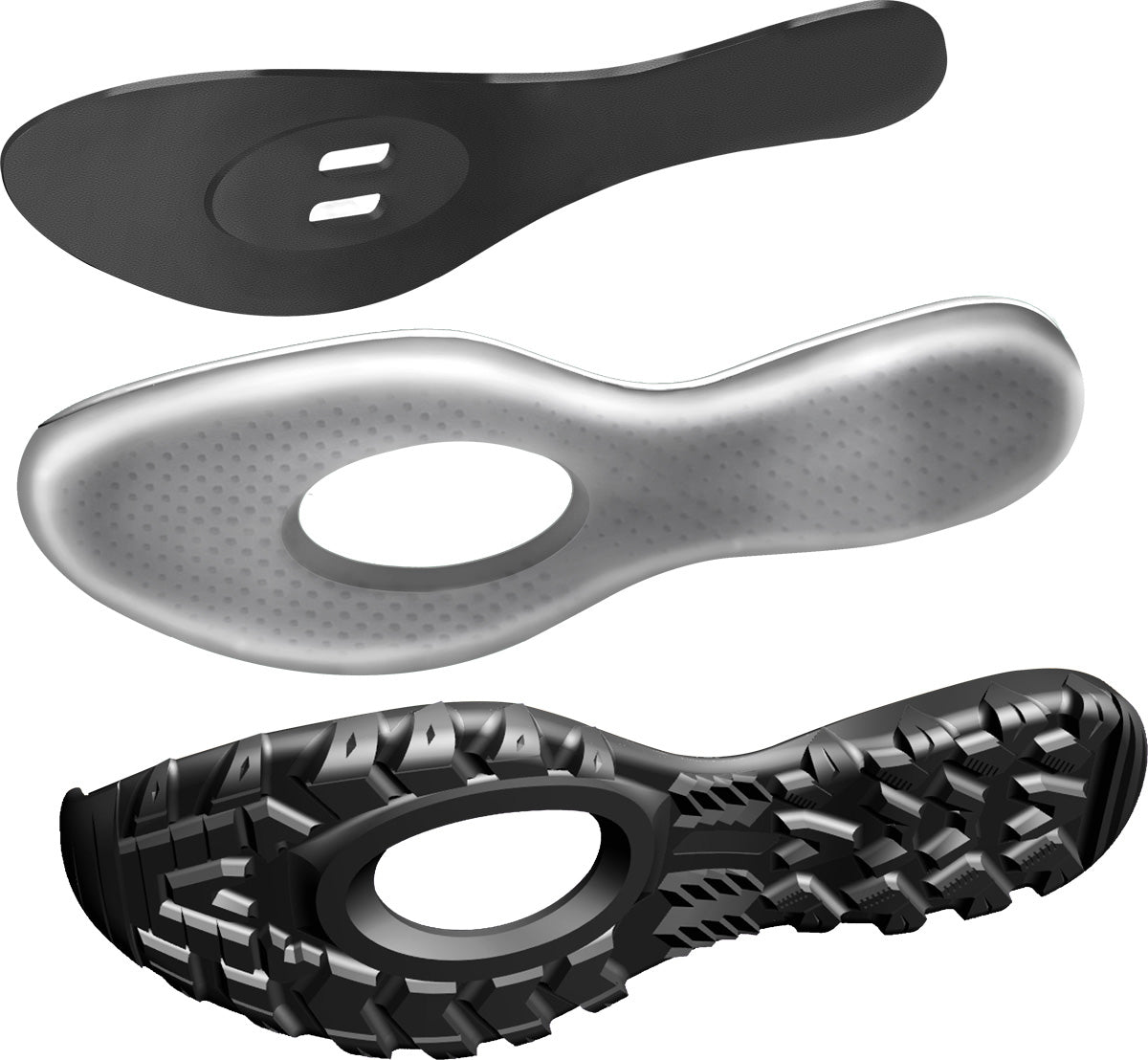 The new AT200 outsole was created especially for the Rexston to deliver exceptional performance pedalling on the bike and comfort off the saddle. A reinforced nylon plate delivers a strong pedal power transfer with a supportive EVA midsole. The full STKgrip rubber tread provides excellent grip, traction and stability for rocky or wet terrain. For the ultimate cleat protection, a circular barrier guards and protects the cleat area for long term use and wear.