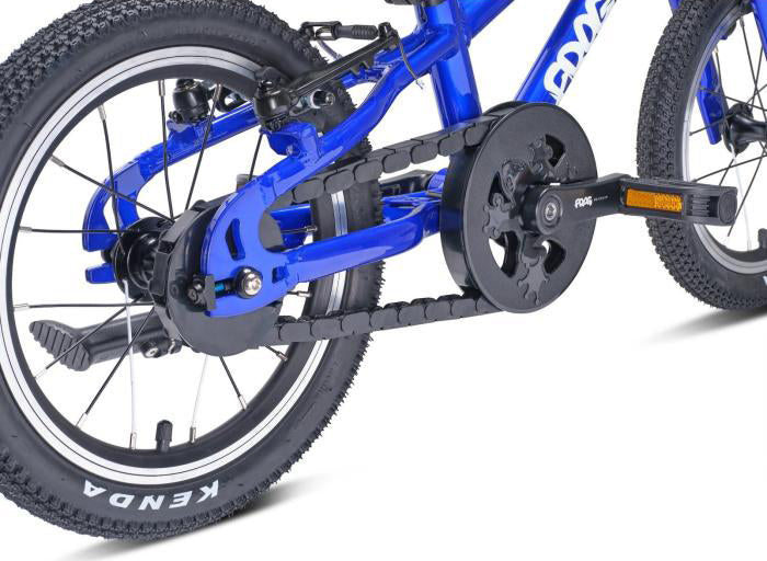 The child-focused design incorporates patented Frog cranks, smaller brake levers, and a perfectly sized saddle, ensuring your little one’s comfort and safety. Meanwhile, the innovative chainguard keeps the bike clean and low-maintenance, meeting ISO8098 safety standards.