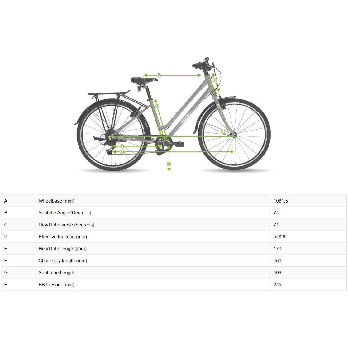 This versatile bike provides an upright ergonomic seating position, easy to mount step-through frame, 8-speed derailleur gears, a floating chainglider, full-length mudguards, a kickstand and a pannier rack, so riders are fully equipped for the city.