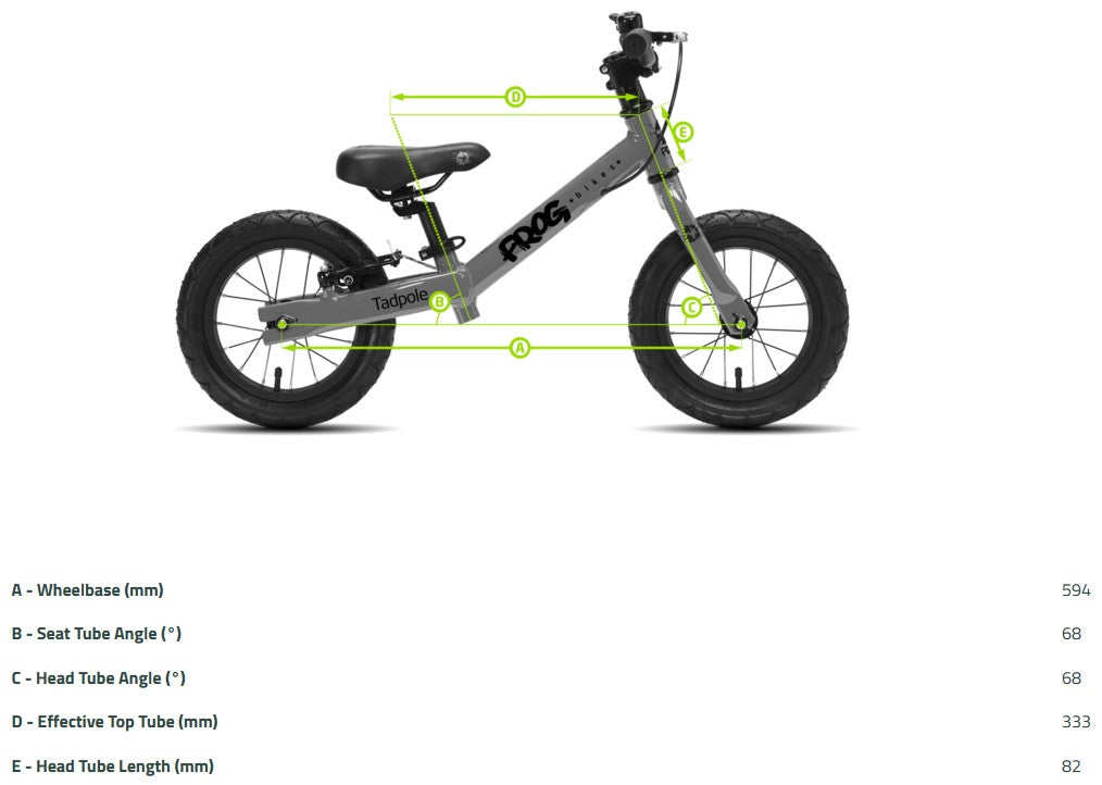 The Tadpole Plus balance bike is suitable for 3 to 4 years with a recommended inside leg measurement of 36cm-47cm.