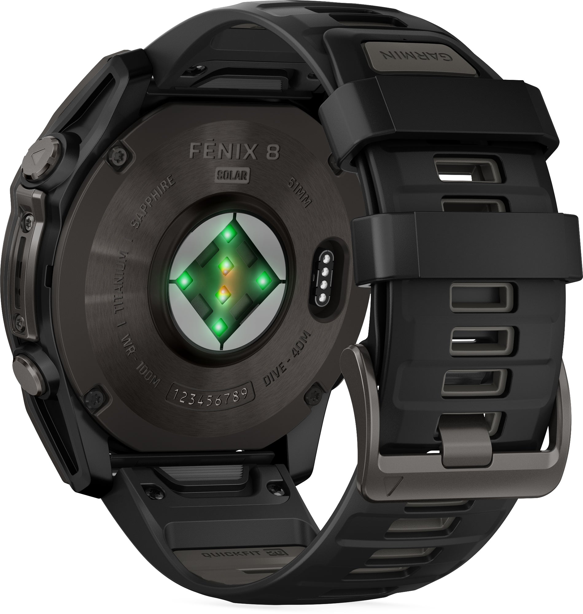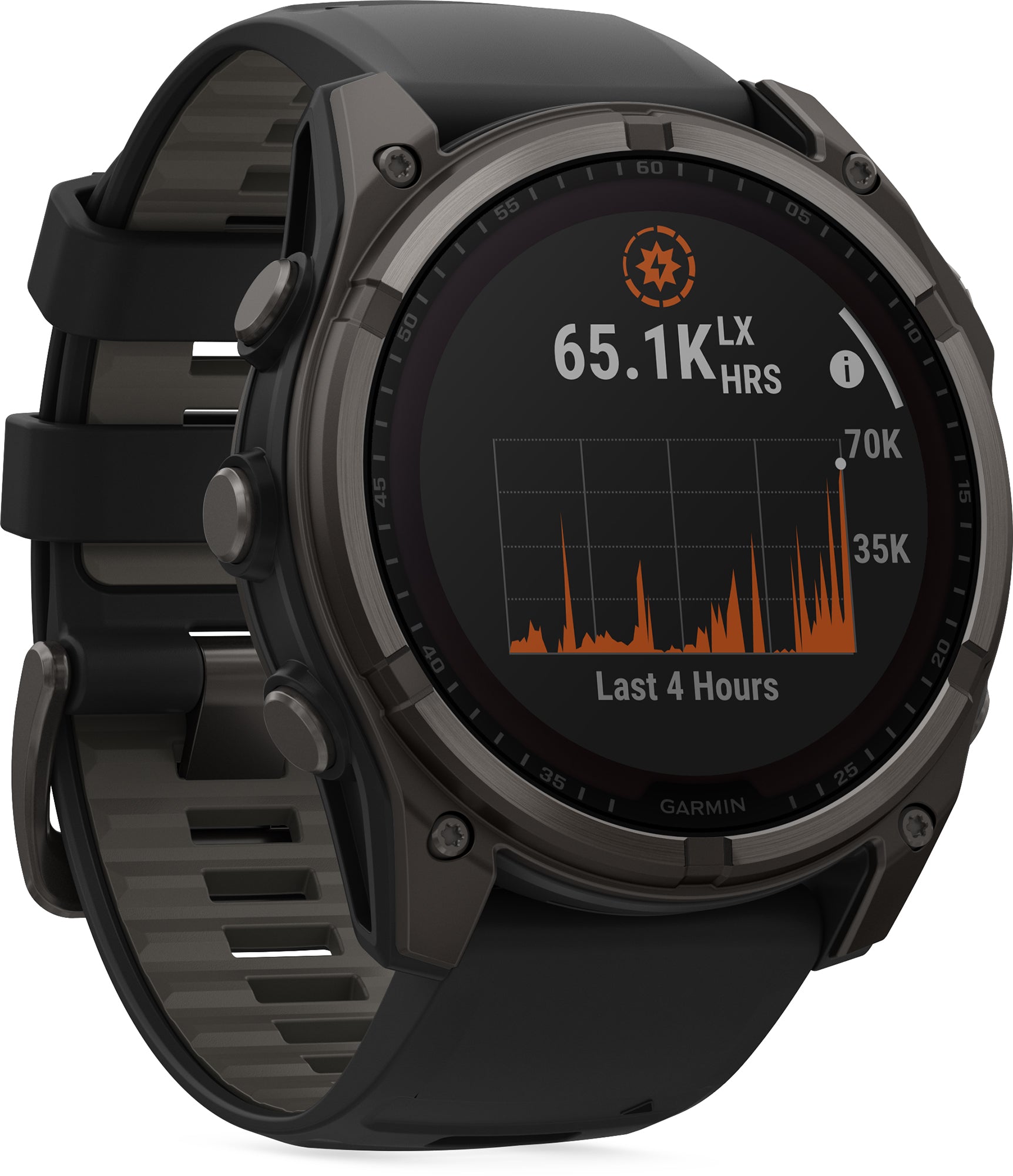 Be limitless. The fēnix® 8 multisport GPS smartwatch is built for serious athletes and outdoor adventurers who want to push beyond their limits. It features a 1.4” solar charged display with scratch-resistant sapphire lens, durable titanium bezel and powerful built-in LED flashlight for after-dark visibility.