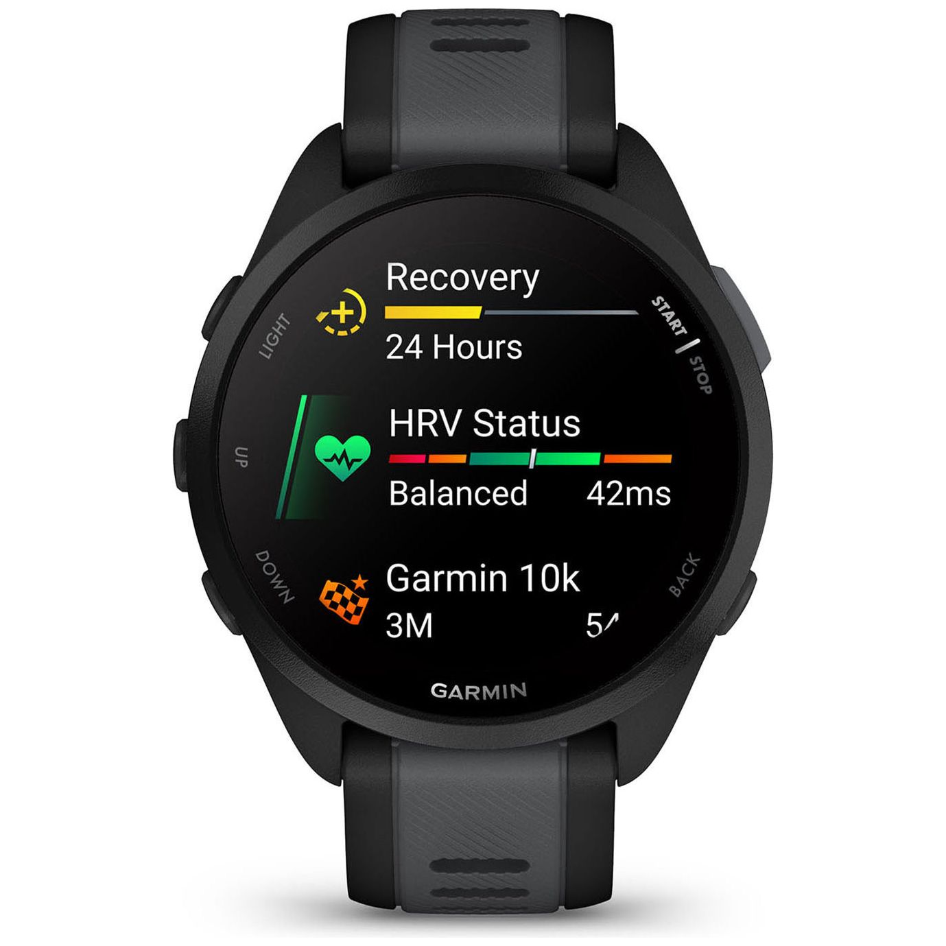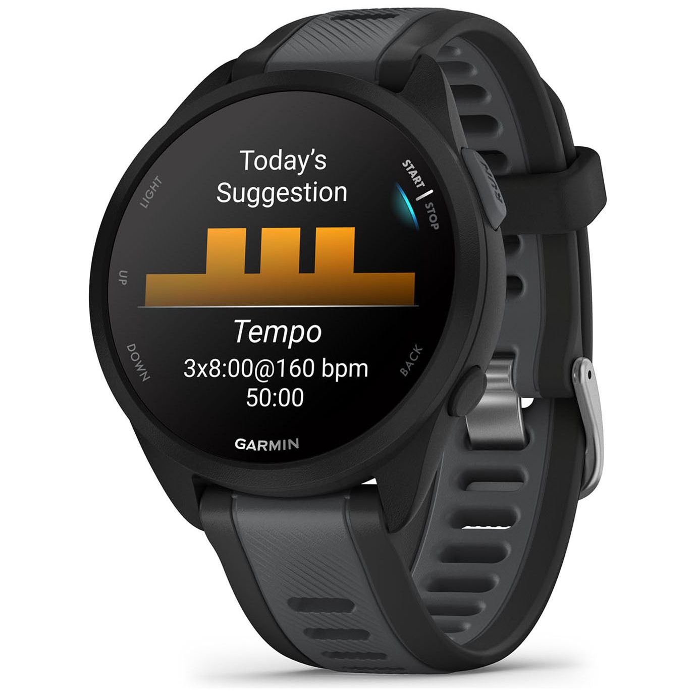 Go ahead — sign up for that race, and train brilliantly with the easy-to-use Forerunner® 165 Music GPS running smartwatch. With accurate pace, distance and heart rate, you’ll see your progress shine on the watch’s AMOLED touchscreen display while Garmin Coach and race adaptive training plans help you chase your goals.