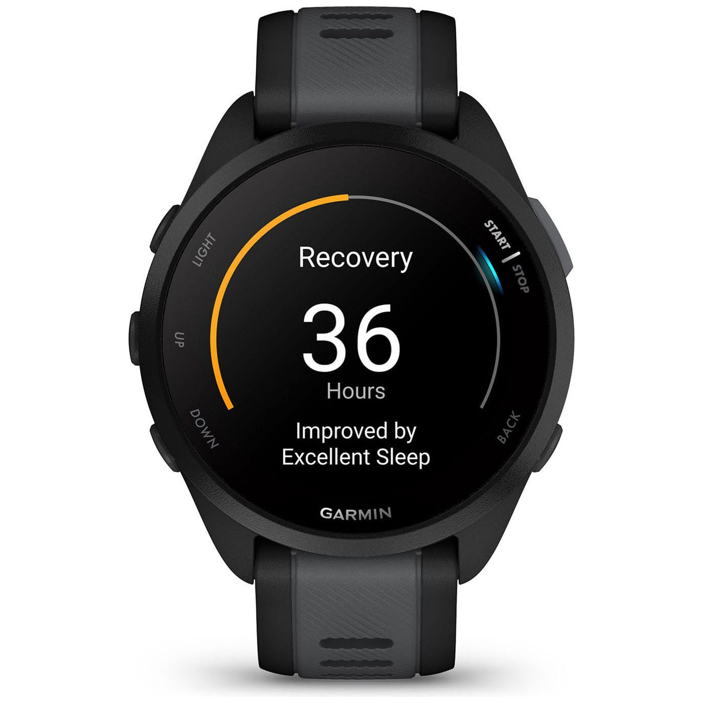 Wake up to your morning report to see health insights alongside an overview of sleep, recovery and training outlook (data presented is intended to be a close estimation of metrics tracked). Use training effect and training effect labels to see how your workouts impact your fitness and to understand the primary benefit achieved from your workout. Then, check recovery time to know how long to take it easy between runs. Let the beat push you further with built-in music storage for phone-free listening. Pair your watch to your smartphone, and your notifications will show up right on your wrist. Get a more complete picture of your health, not just a glimpse, from your Forerunner 165 Music smartwatch, with up to 11 days of battery life in smartwatch mode.
