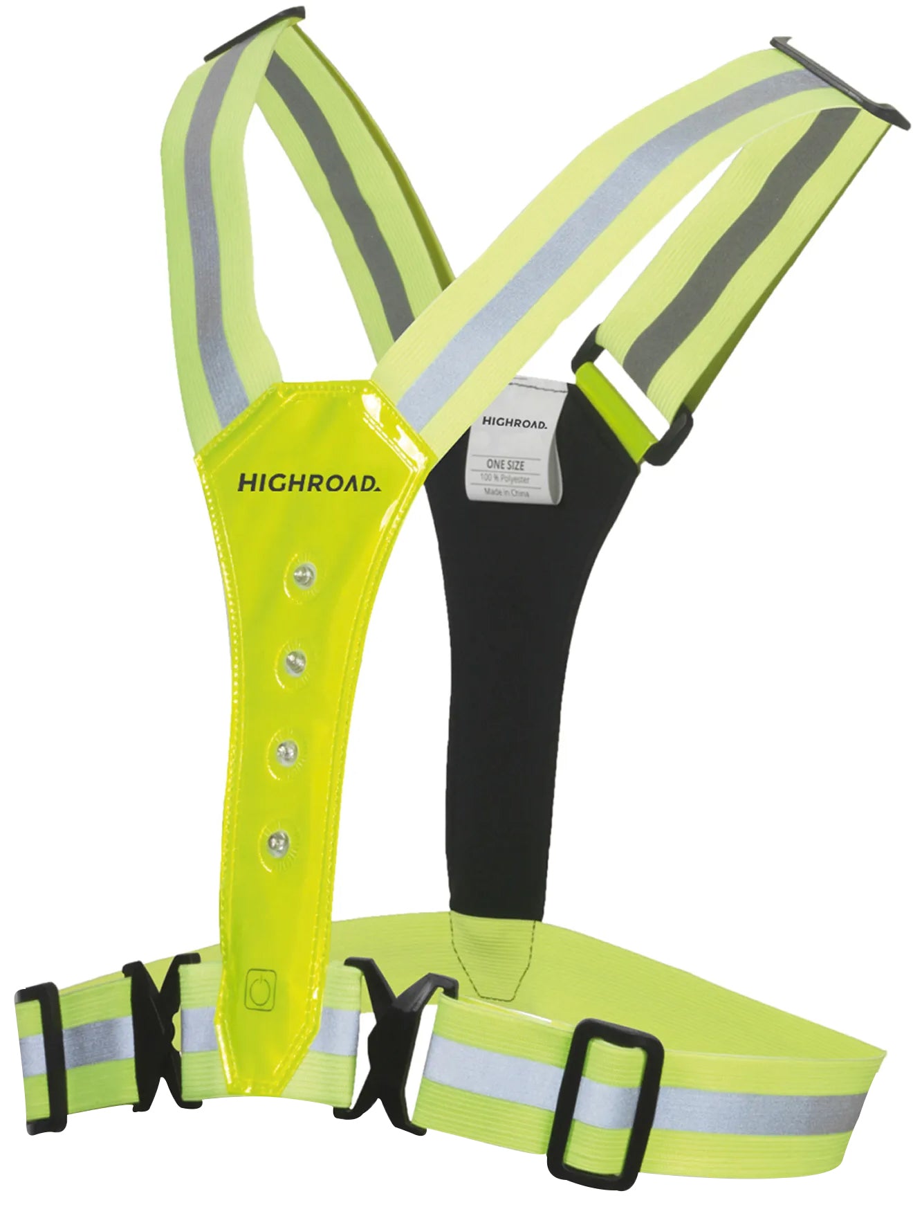 The Highroad LED Sports Vest keeps you safe while on the road. The vest is easily adjustable to body size with its slip lock shoulder and hip buckles. The two frontal clips allow you to easily lock the Highroad LED Sports Vest in place, even when combining the vest with a thicker winter jacket.