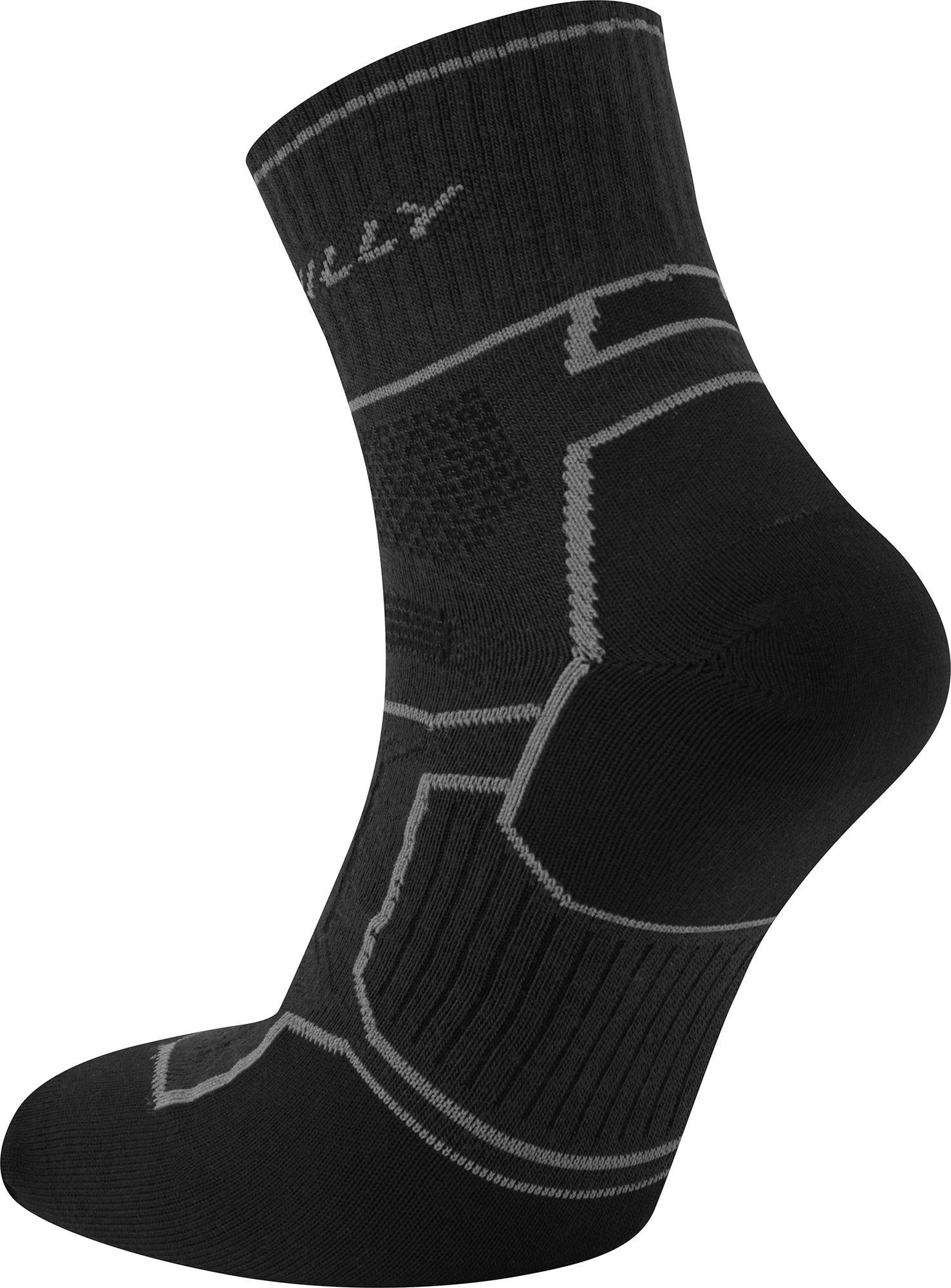 Designed with a double-layer construction, the Hilly Twin Skin Medium Cushioning anklet socks help to prevent rubbing and friction which cause blisters so you can stay distraction-free throughout the run. The LYCRA Sport fibres ensure lasting comfort, fit, shape and performance while a Y-heel design helps to improve the fit and minimises slippage. A Q-Skin inner transfers sweat and external moisture to the drirelease E.C.O. cotton outer fabric where it can be evaporated for a rapid dry time. The vented upper and outer allows cool air to circulate to help control temperature and finally, a flat toe seam further reduces irritation and slippage so the socks remain in place.